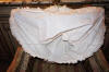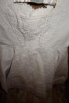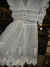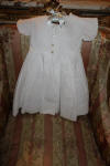 #AntiqueFrenchWhDress. Another Fine Antique French Childs Dress circa late 1880's and done to perfection as shown. A truly darling thicker cotton child's dress from France and some (as shown) hand sewn. The workmanship is superb as well as the quality and it is white in color. There are four old buttons at back and the hem is wide in case you feel you wish to let it down. The workmanship appears to be hand sewn as shown on the interior of the dress. There are seven minor pin hole markings on side very minor, and in back where dress opens wider a small opening approx 1/4" never got sewed and looks to be like a tiny rip however looking closer it never got sewn. In addition on front there is a stain as shown in photos --size of a dime. The dress is gorgeous in person and shows up beautiful other then mentioned. Its well made and clean and pressed.