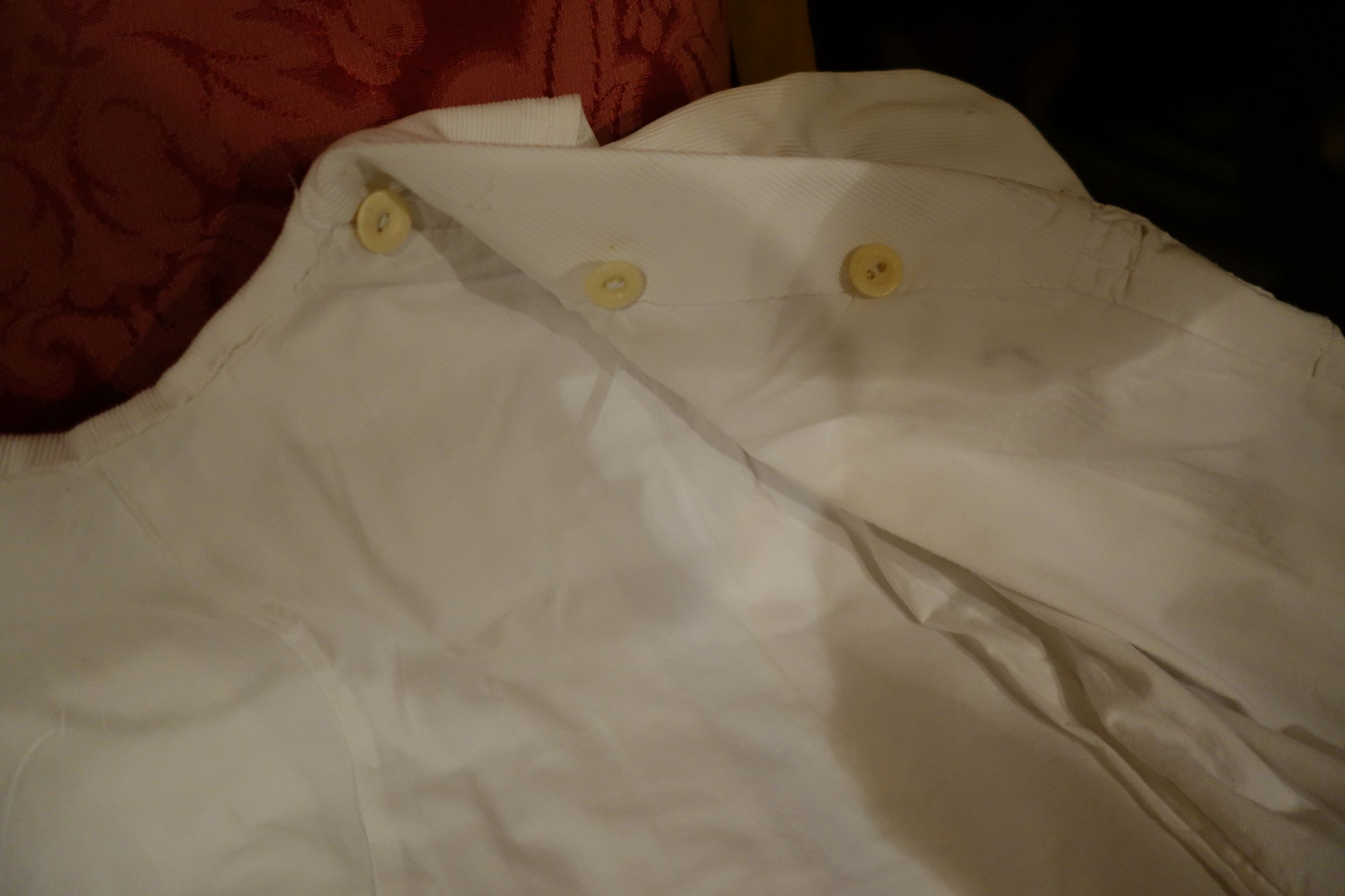 Summing it up: This is both machine and hand sewed. The lace which the stitching has come loose is approx. 4 feet in length which needs to be re-sewn/minor lace tear away --as this area unraveled. The upper neck area interior also needs to be sewed as tears /openings are surrounded in this area which is the entire interior length at the neck.. Minor holes in this area also due to being on the neck line and shoulder area worn in the past. Also one at bottom interior. These to me are minor things considering the fine quality of workmanship done on this Antique French Wool and Silk Lace Cape.
