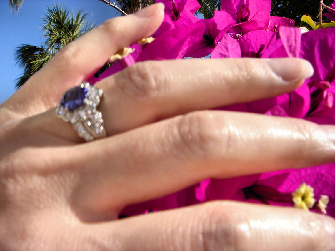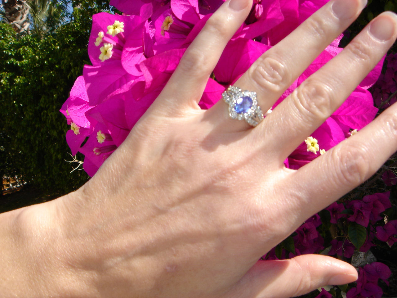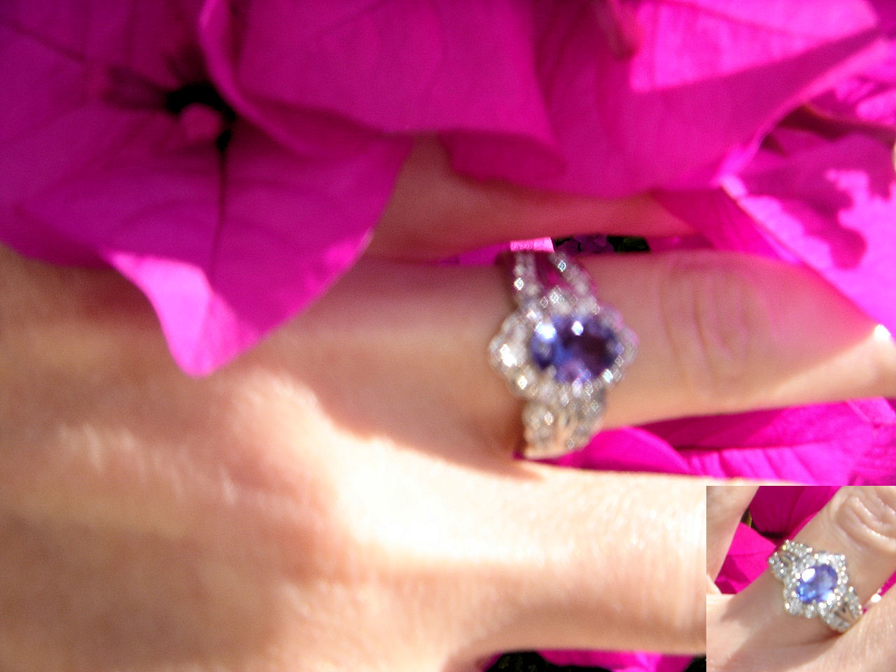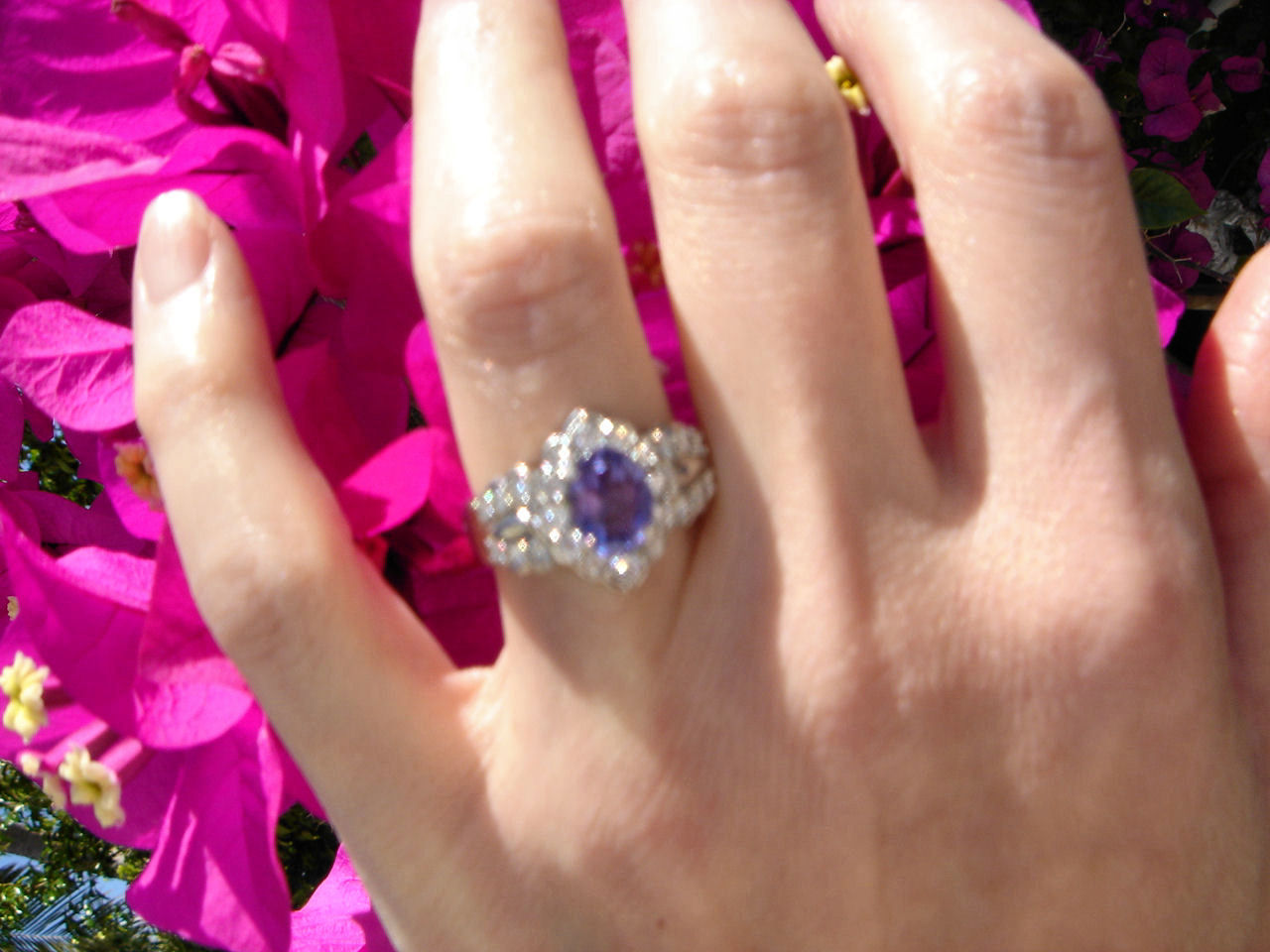 #AR. Exquisite Diamond & Tanzanite Platinum Ring. Center stone large Oval Tanzanite surrounded by quality brilliant diamonds.