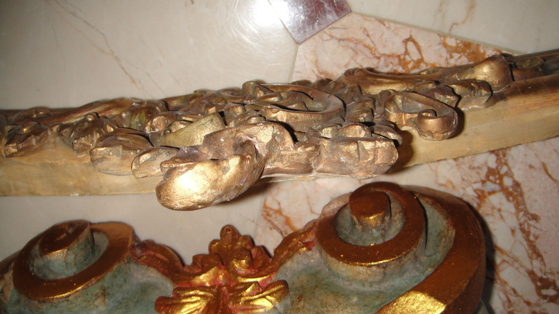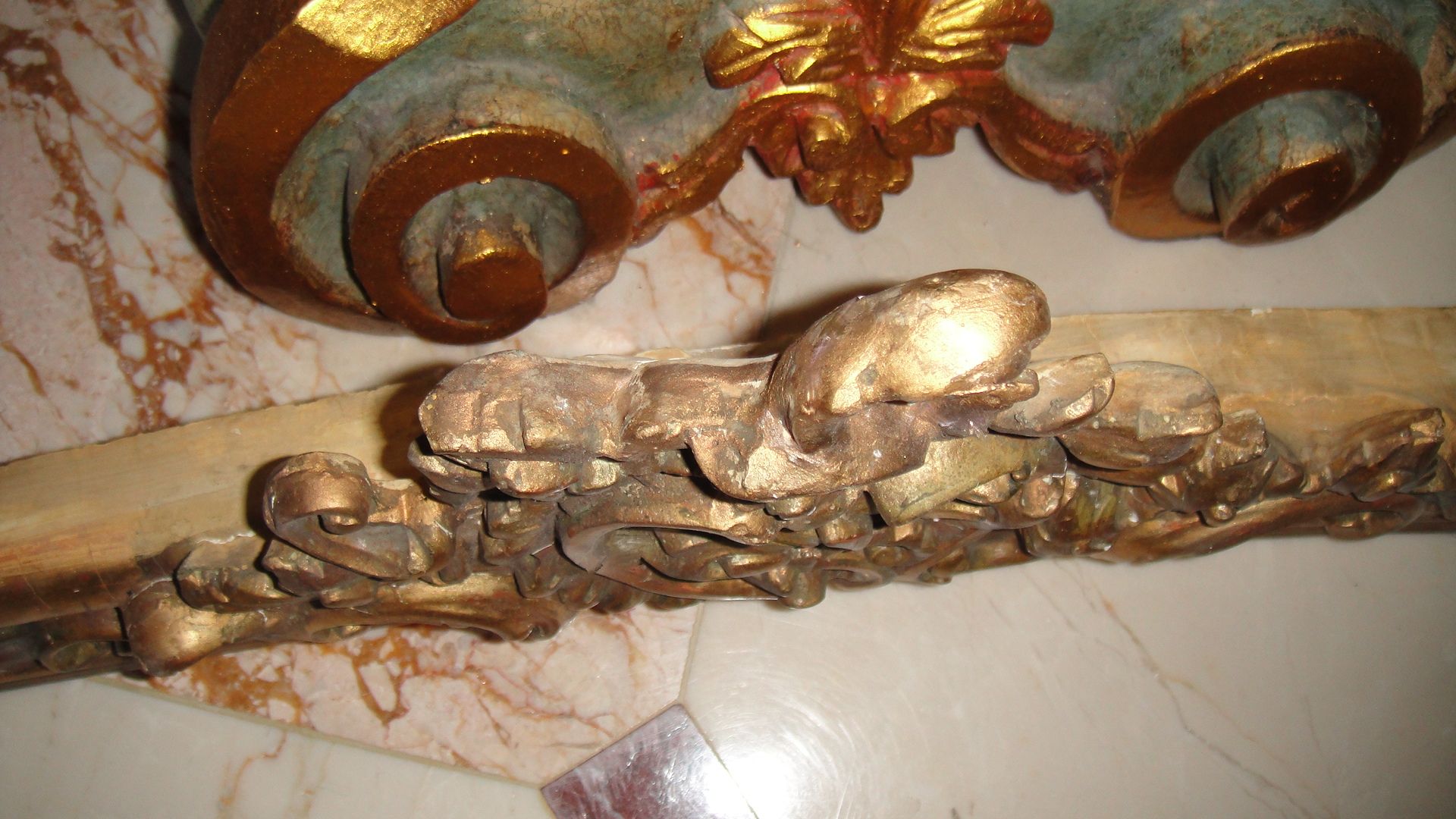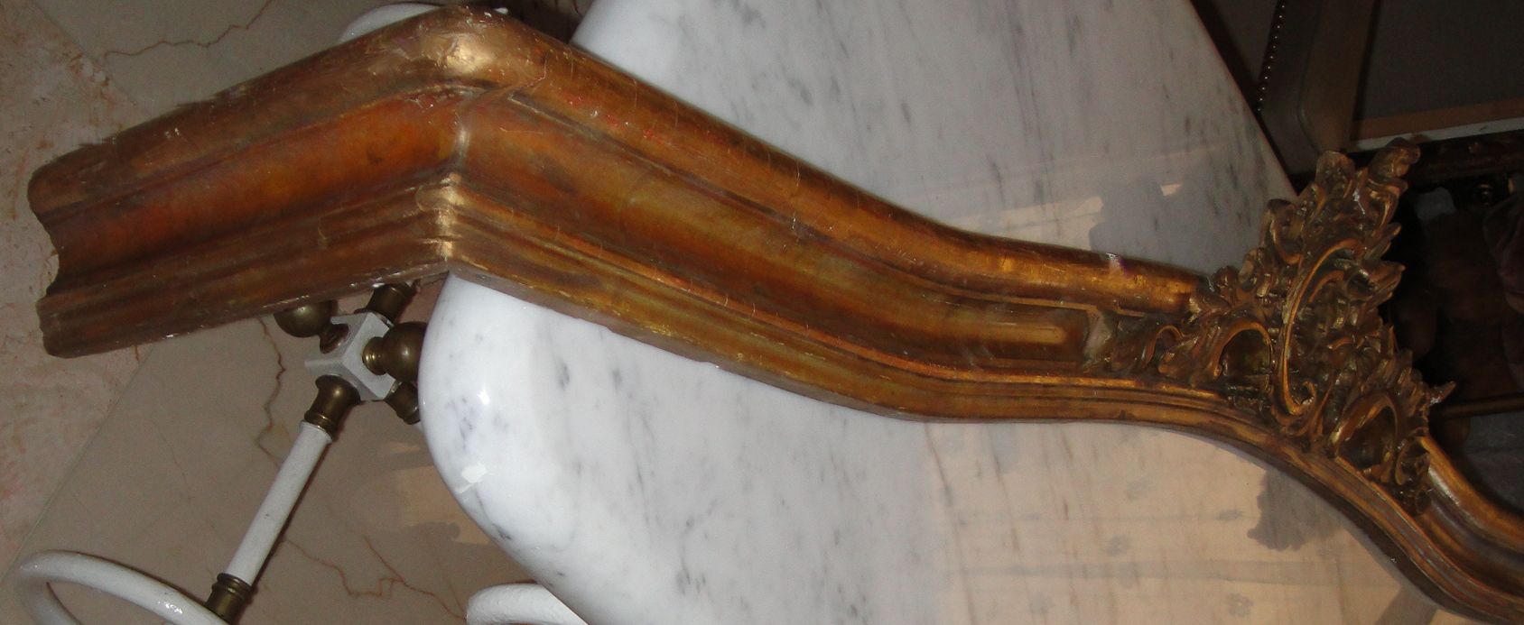 #CORNPG.ANT. Gorgeous Antique French Gilt / wood Cornice / Valance. This is stunning and hand crafted circa late 1800's. The center gilt area is totally hand done having stucco, gilt and placed on the wood area for surrounding your windows or doors. This surely makes a rich appearance in any room. The French made the most stunning and glamorous antiques and this is one you might wish to add inside your home. Its been previous sectioned into three pieces sometime during its life and has been modified to allow re-assembly. It will be shipping to you in three pieces however all you would have to do is use the screws that come with this and merely re-screw them back.. It will be so much cheaper also for the shipping cost seeing it will be smaller in packing. This is a Gorgeous French Antique and it just arrived to me from my recent purchases while in France.