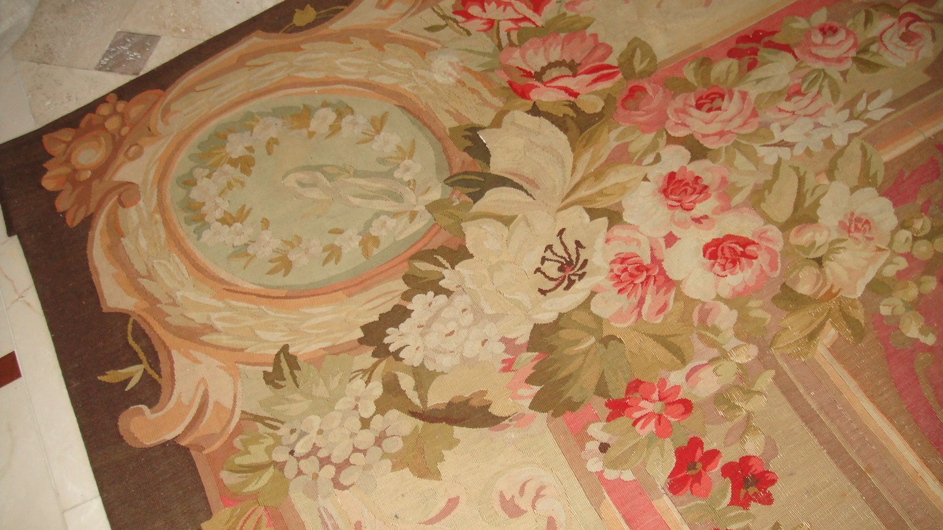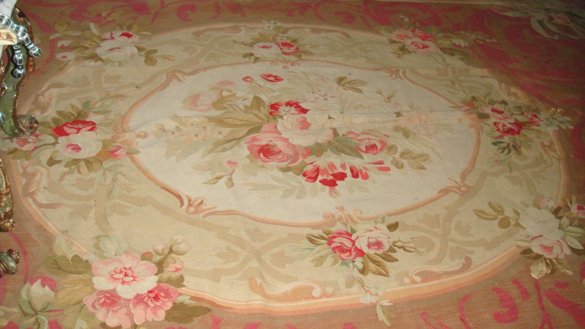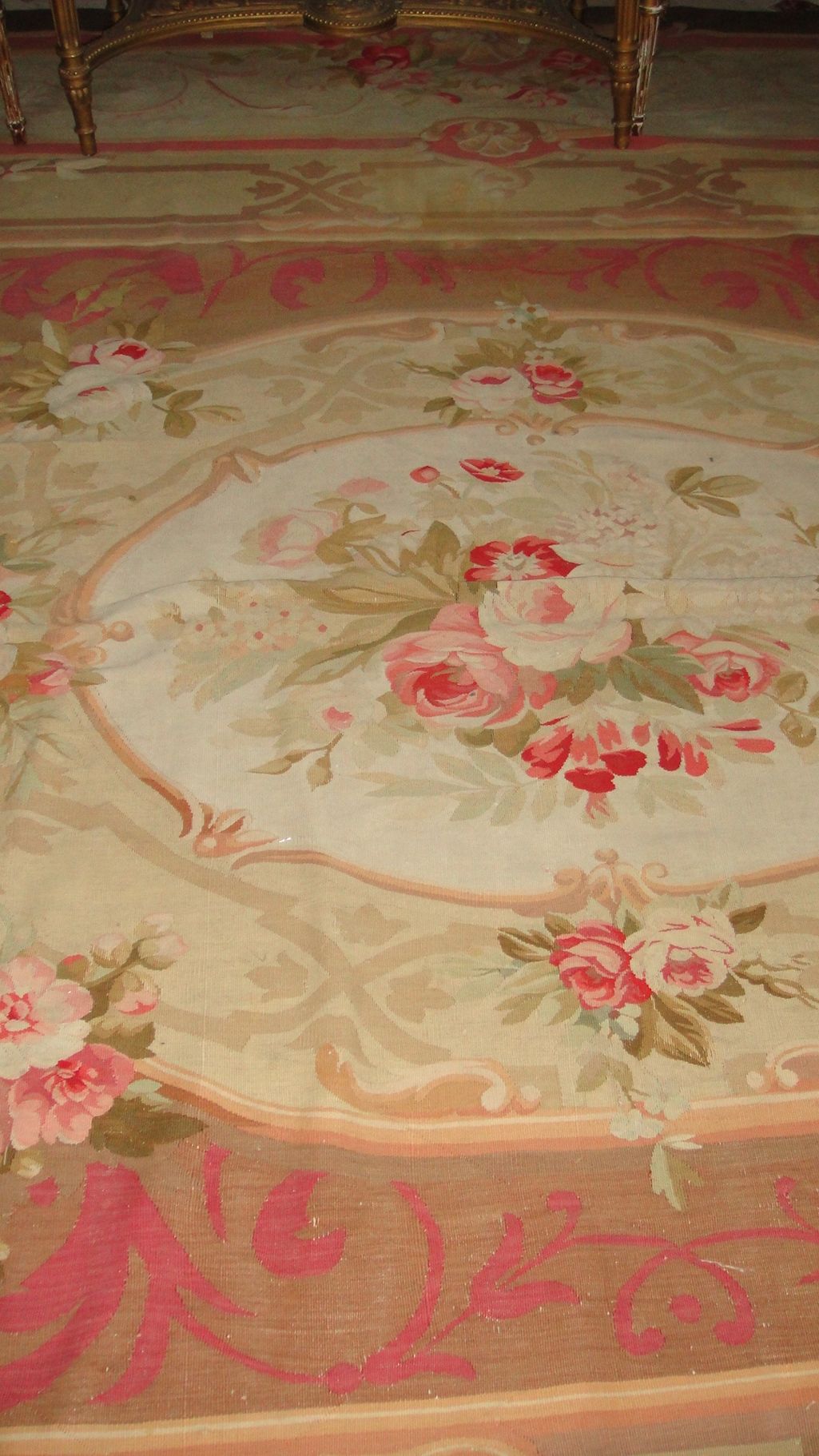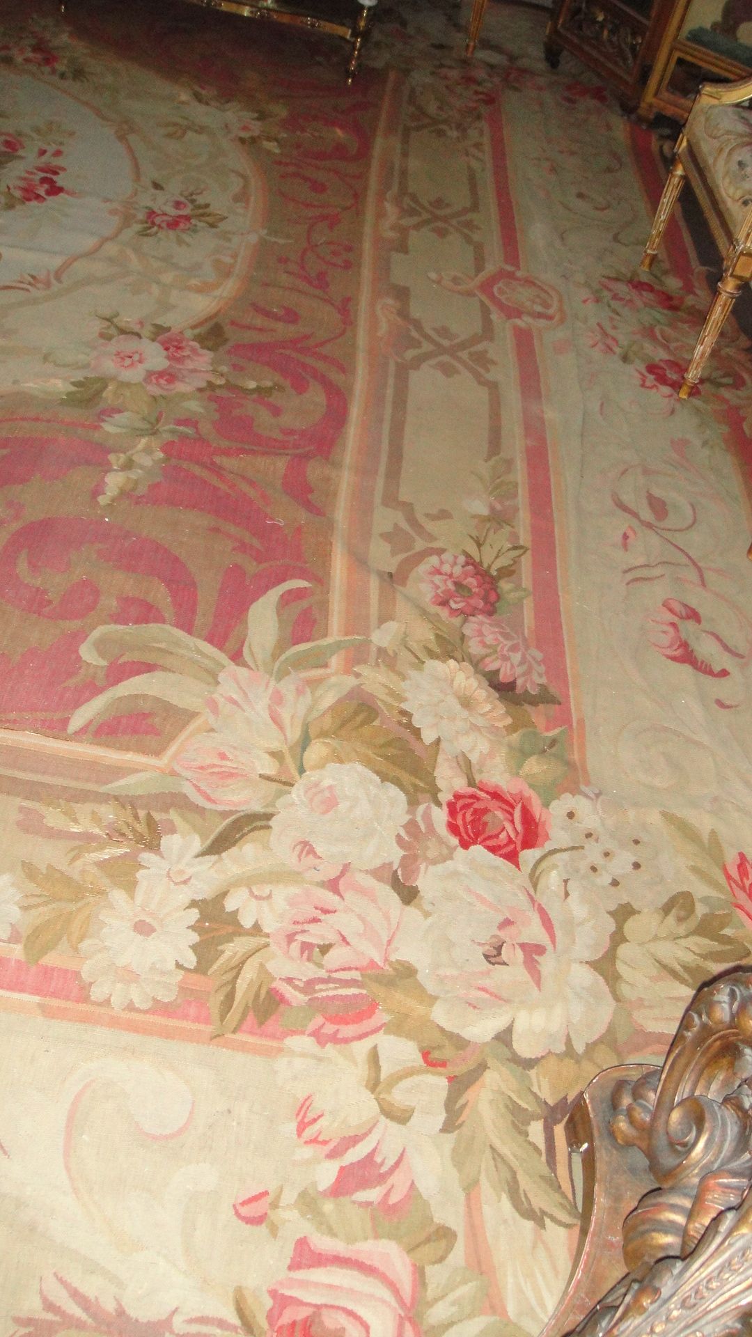 Pg.Tapestries/brown/pinkAubusson. Gorgeous Antique French Circa late 1800's very early 1900's Aubusson. This Antique French Aubusson is gorgeous and the colours remain vibrant as well. There are slits through-out however these can easily be mended by an professional. note: the slits are merely where they were weaved together and the threads have come out and this can be easily stitched back again in all these areas. There are many areas.