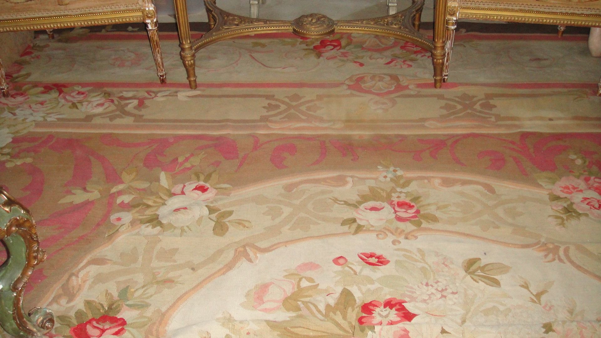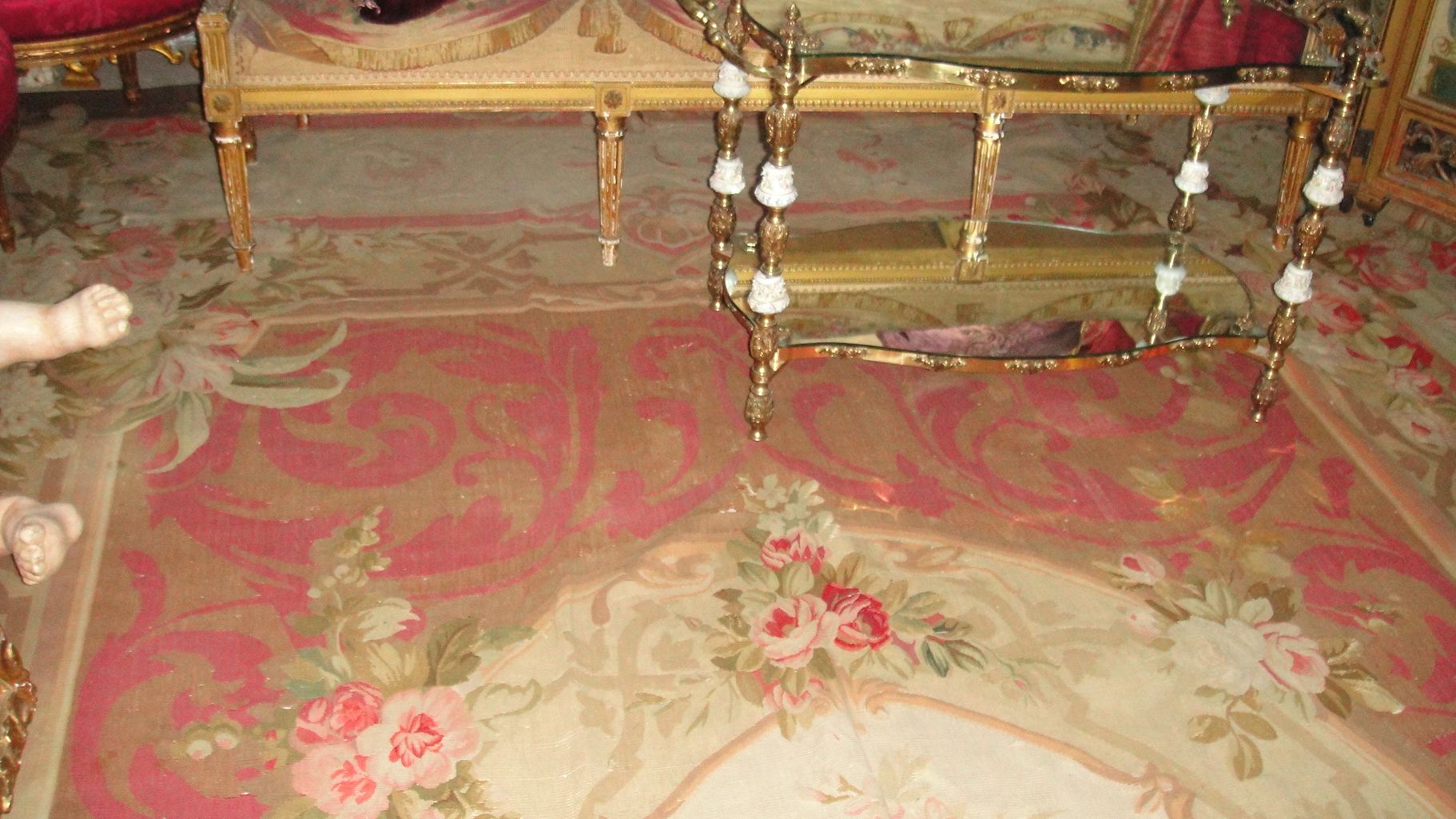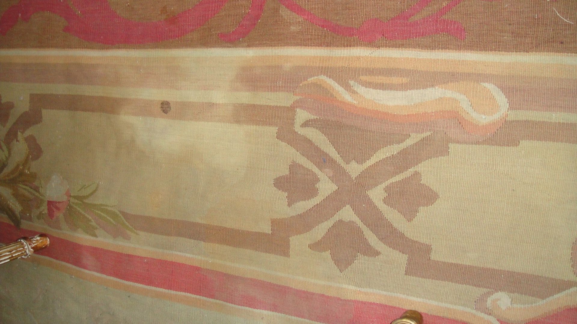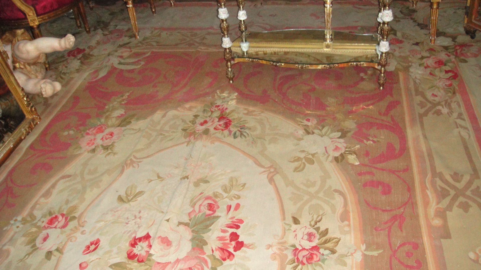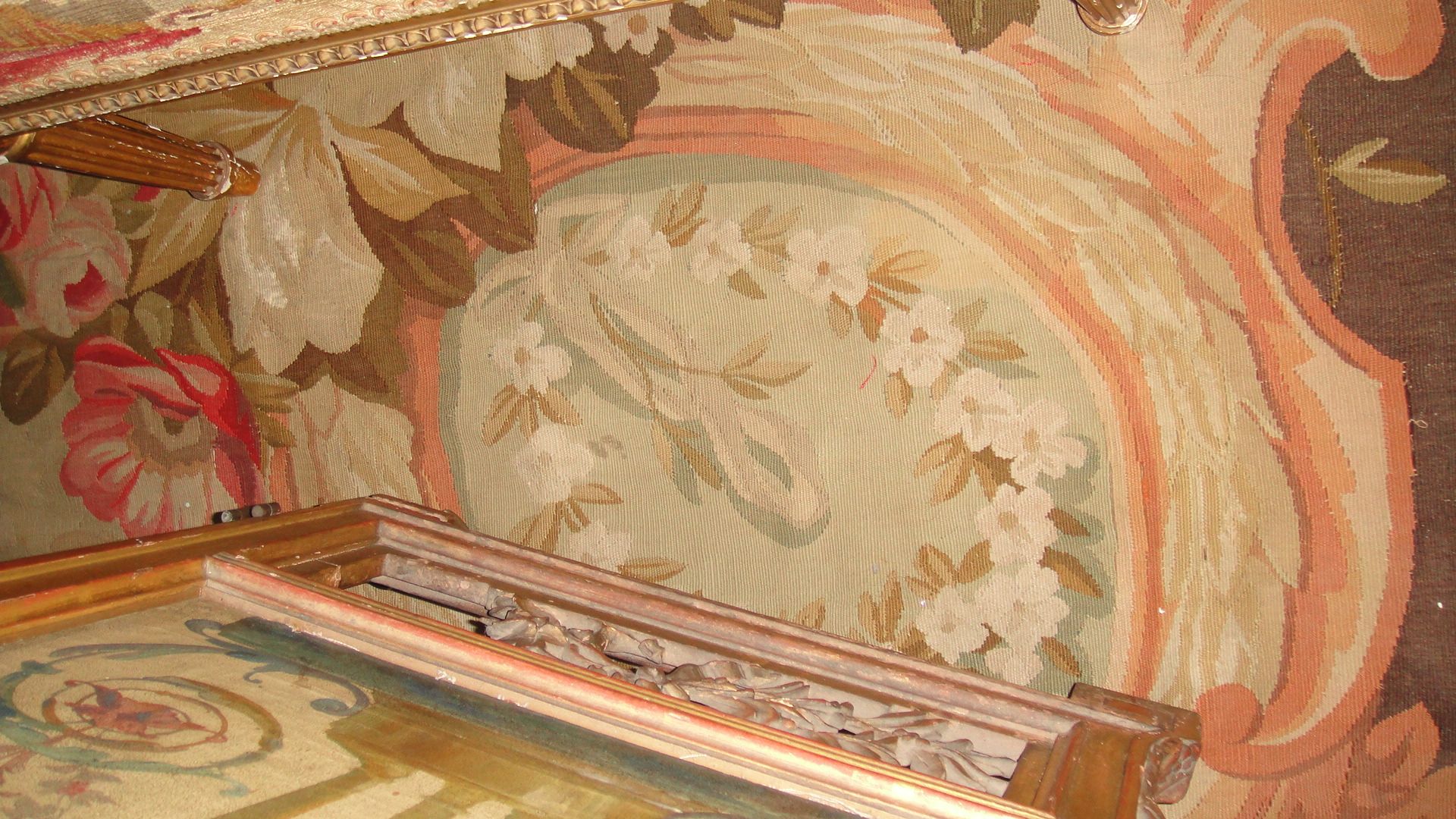 Pg.Tapestries/brown/pinkAubusson. Gorgeous Antique French Circa late 1800's very early 1900's Aubusson. This Antique French Aubusson is gorgeous and the colours remain vibrant as well. There are slits through-out however these can easily be mended by an professional. note: the slits are merely where they were weaved together and the threads have come out and this can be easily stitched back again in all these areas. There are many areas.