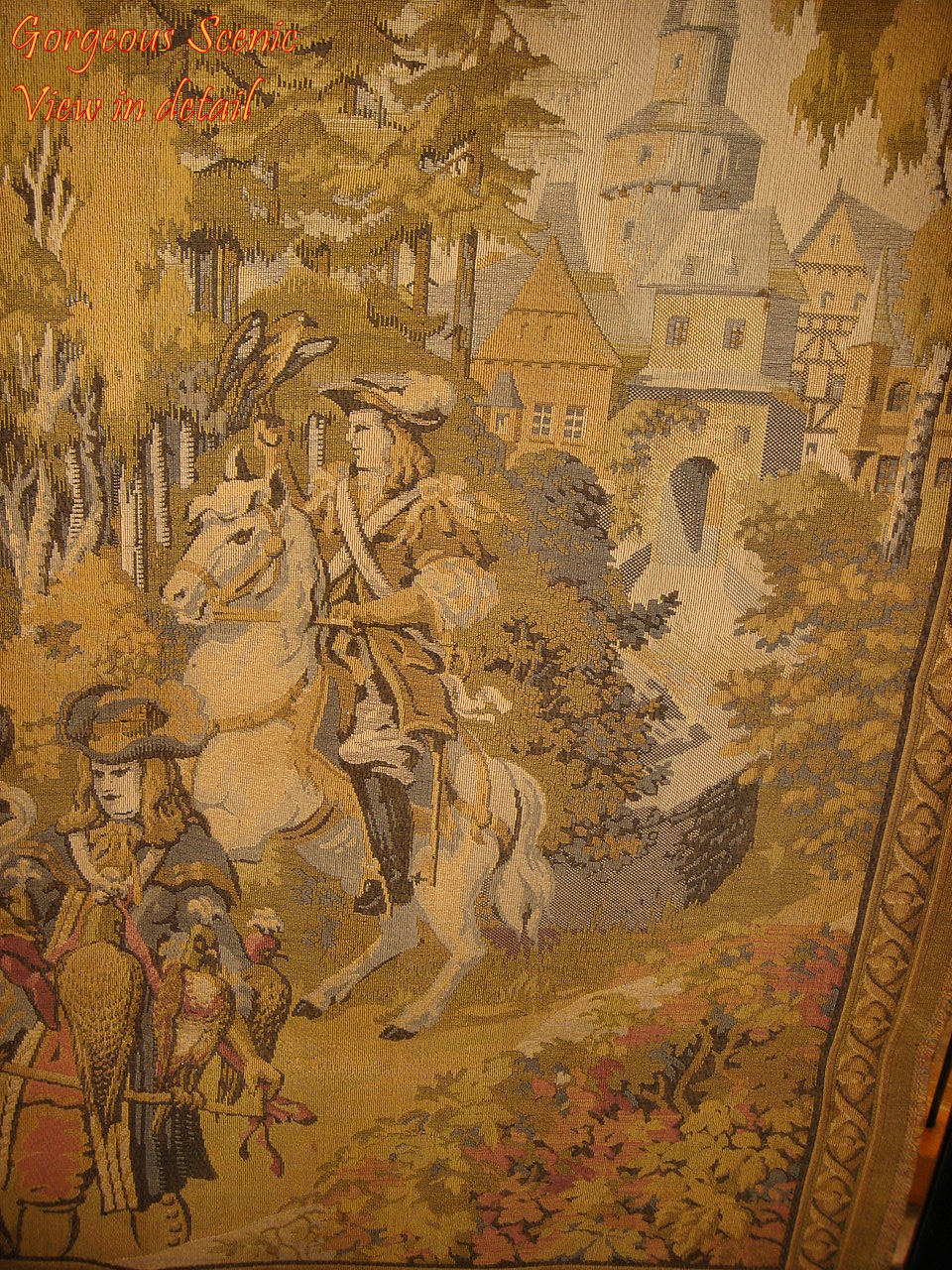 #RT. Gorgeous Fall Colors in this French antique Tapestry and filled with beautiful detailed figures & scenes- in addition to the beauty of the colors of fall. Pocket rod loops at backside already for easy hanging.