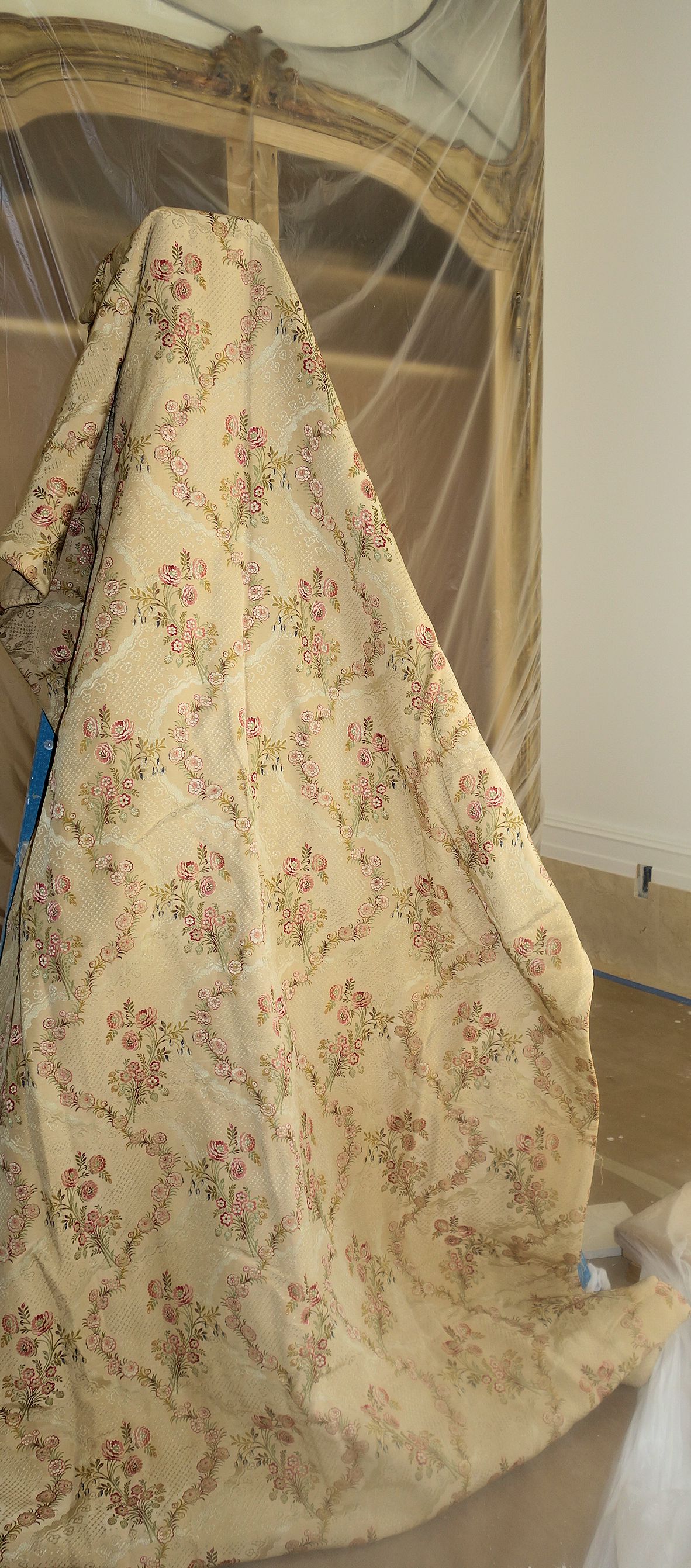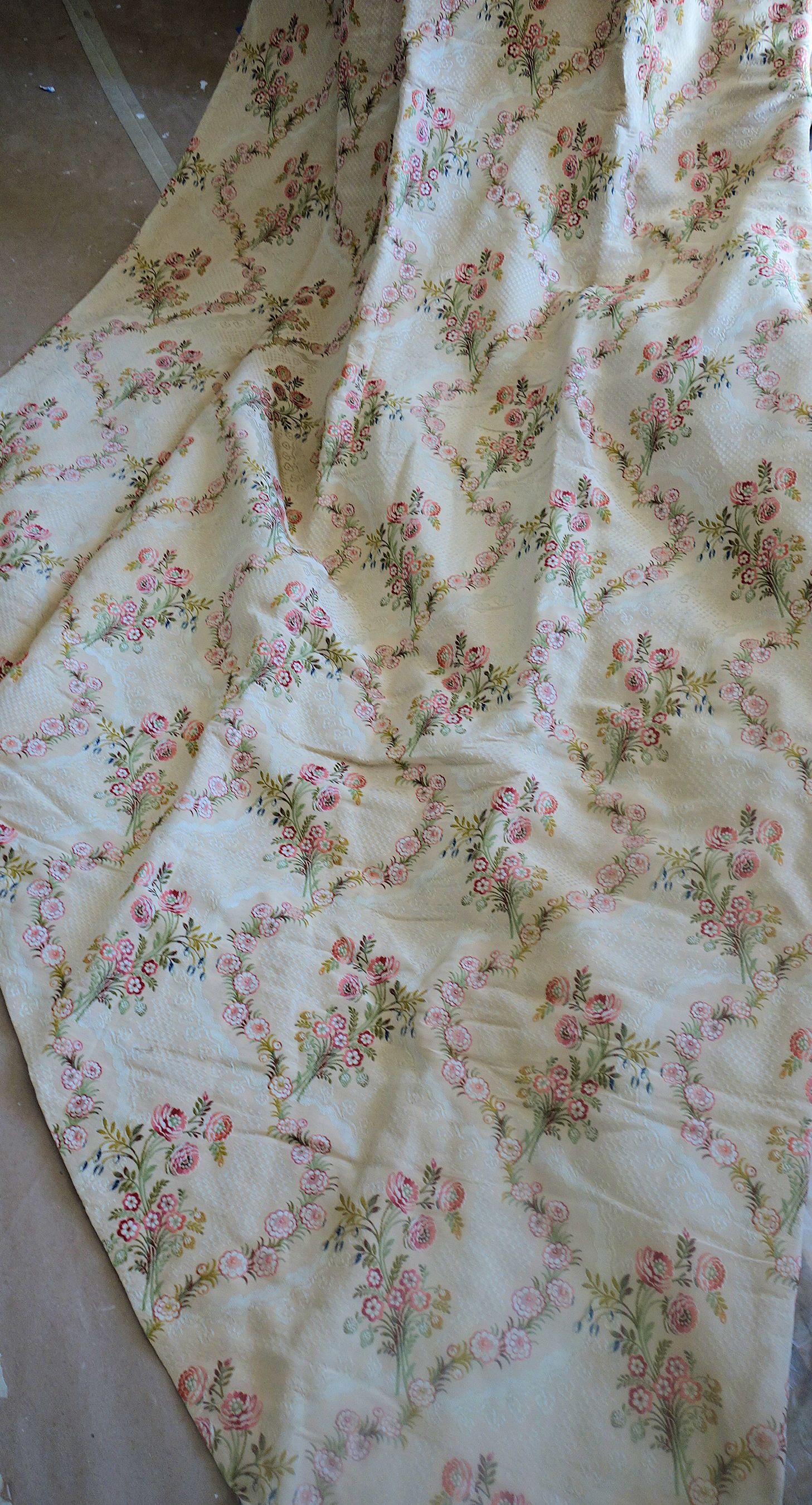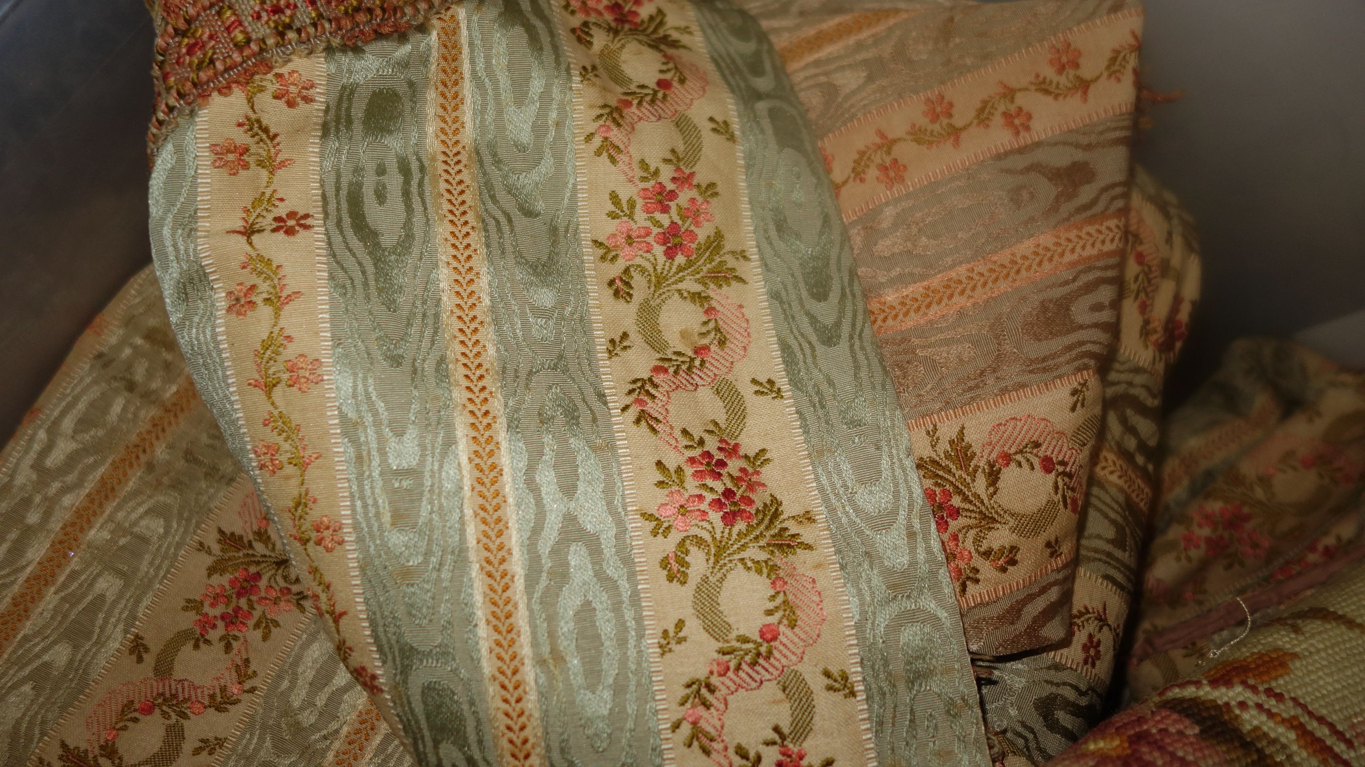 Coming soon a large set of gorgeous silk Antique French Panels Drapes having valances and swags as shown below but fading on many of them..