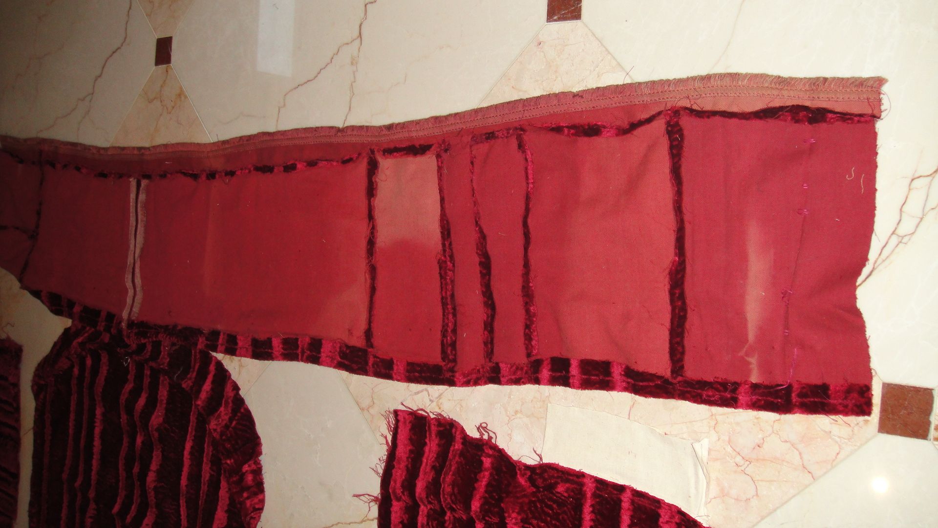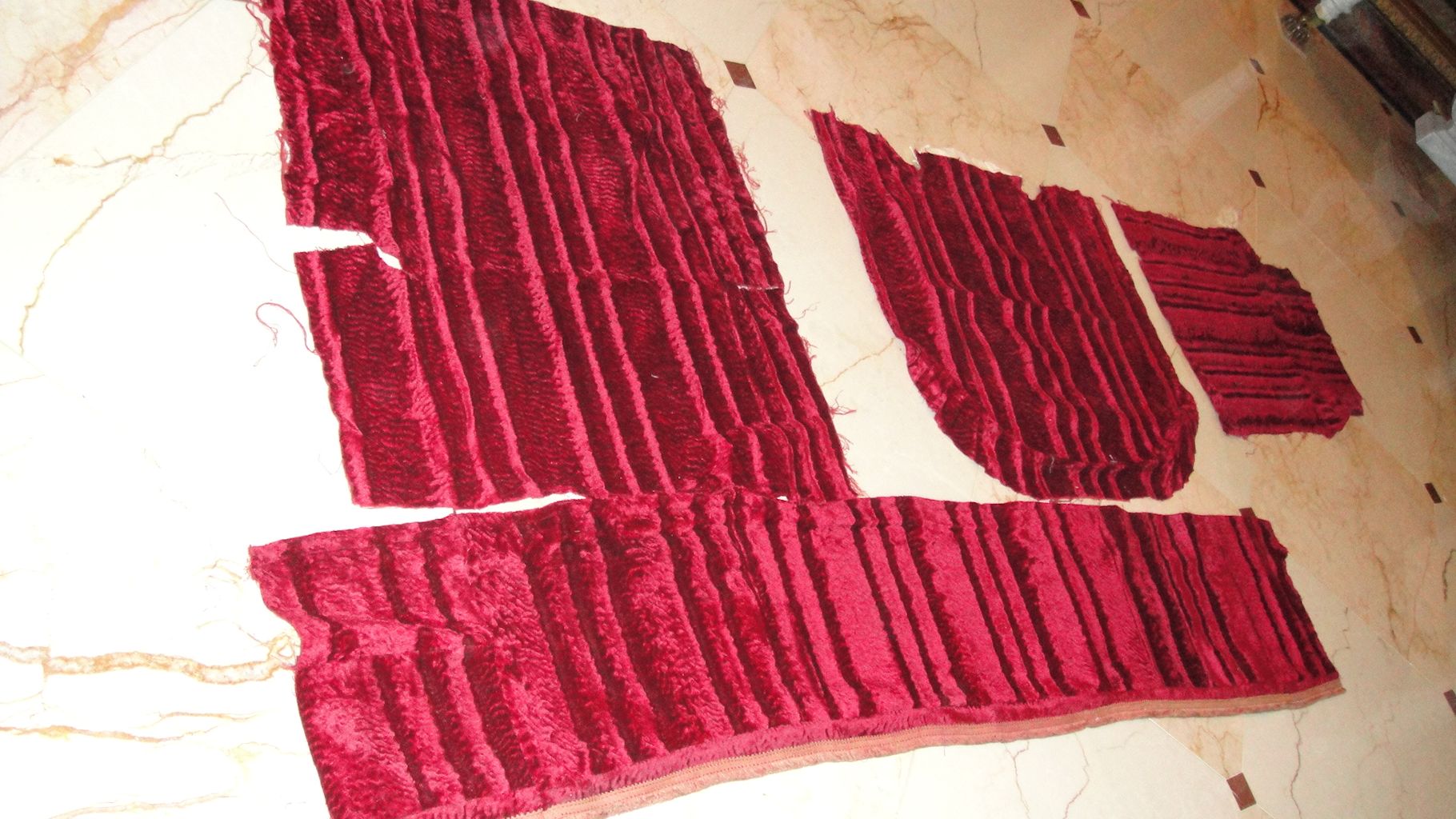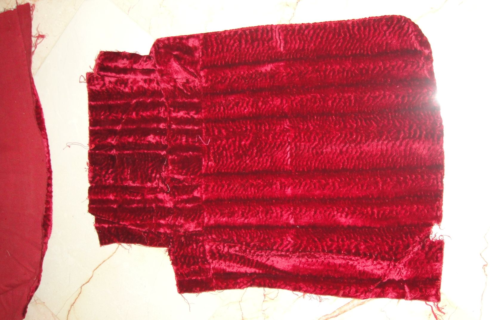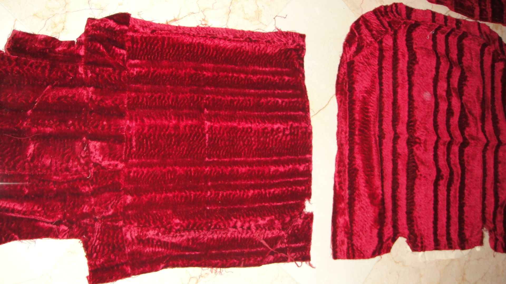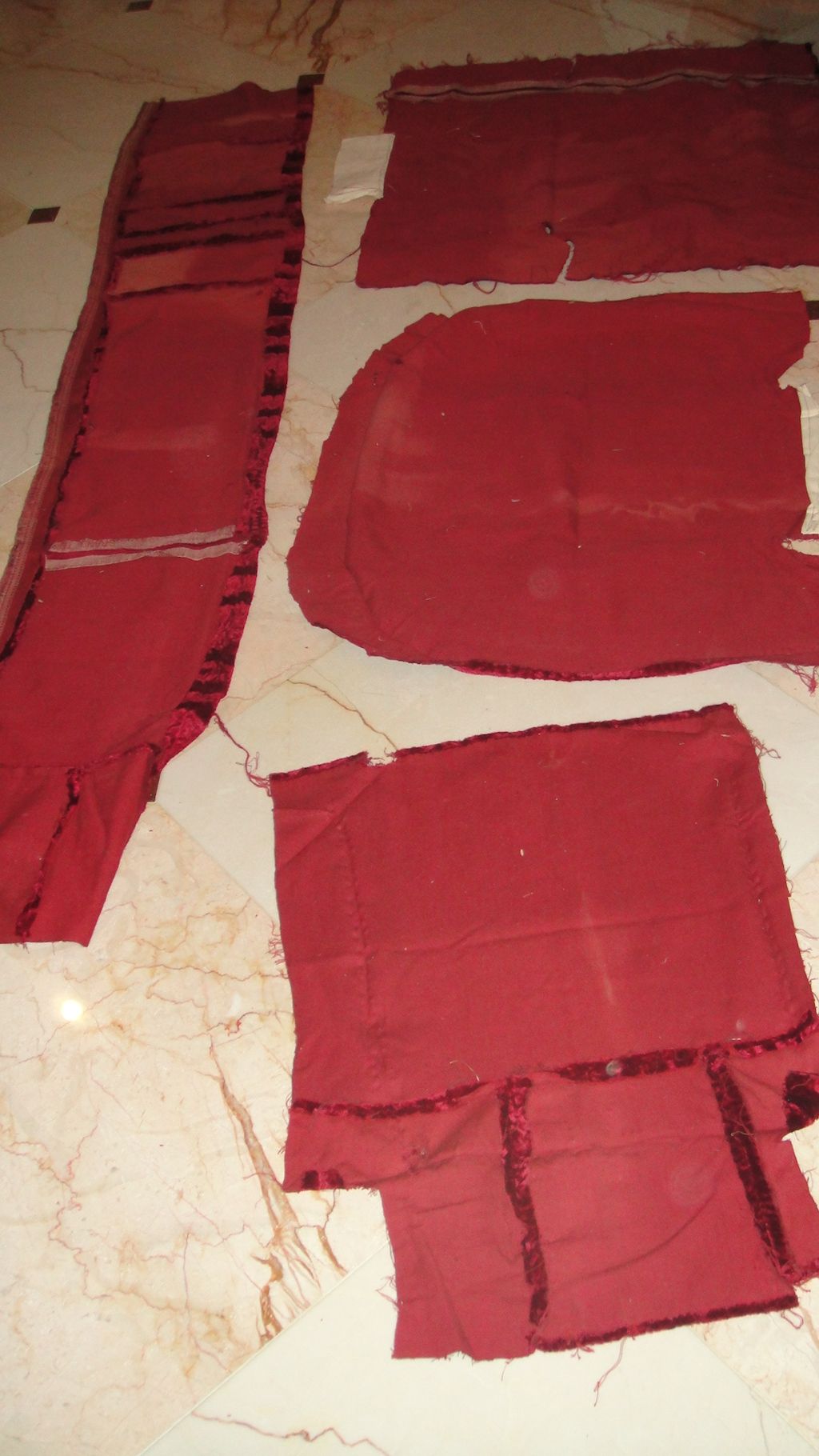 Pg.7/ Rich in appearance French Antique Velvet pieces of fabric to be used for projects or upholstery or pillows. Total of 4 pcs. in rich burgundy. The velvet has texture in appearance and would certainly show up in the most beautiful way on any piece.