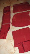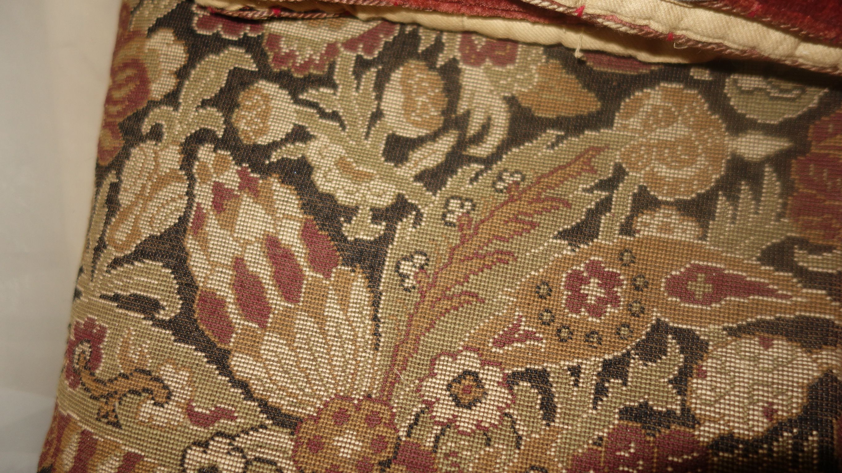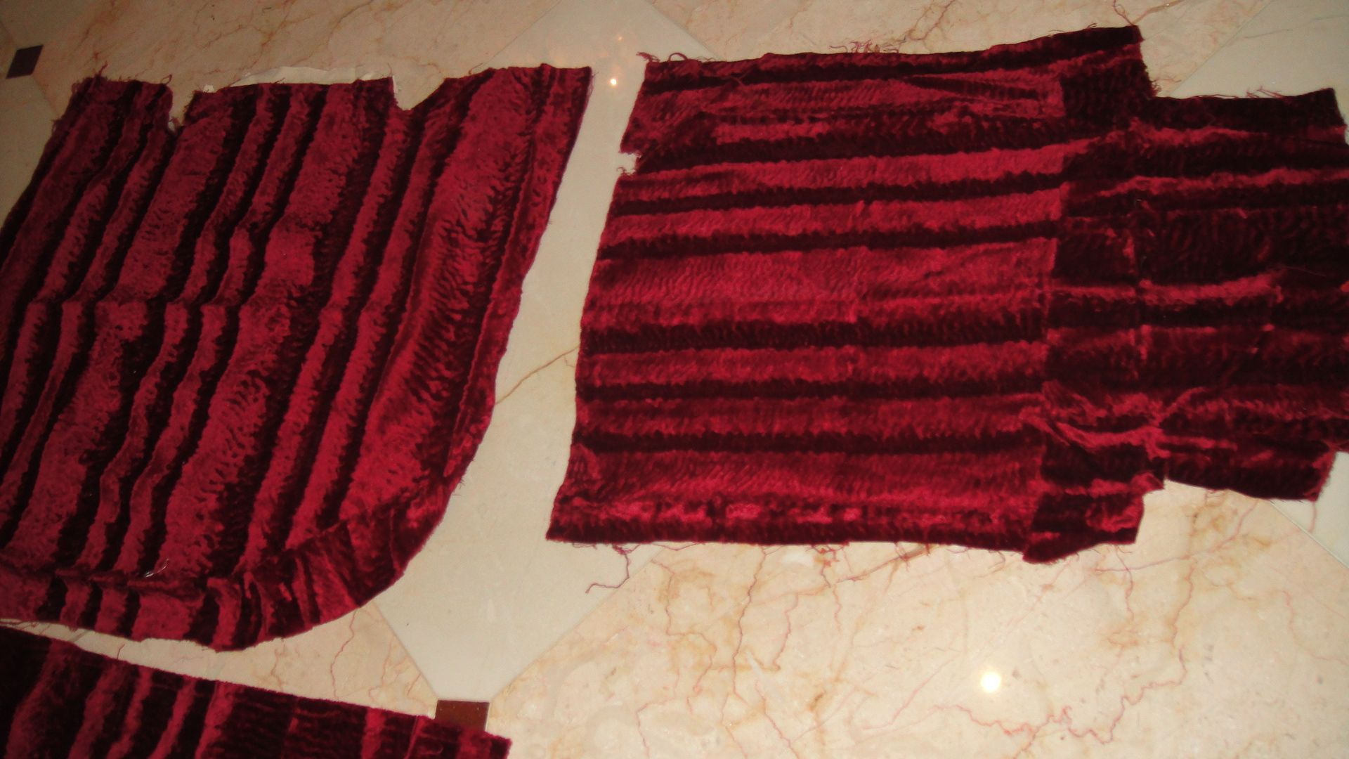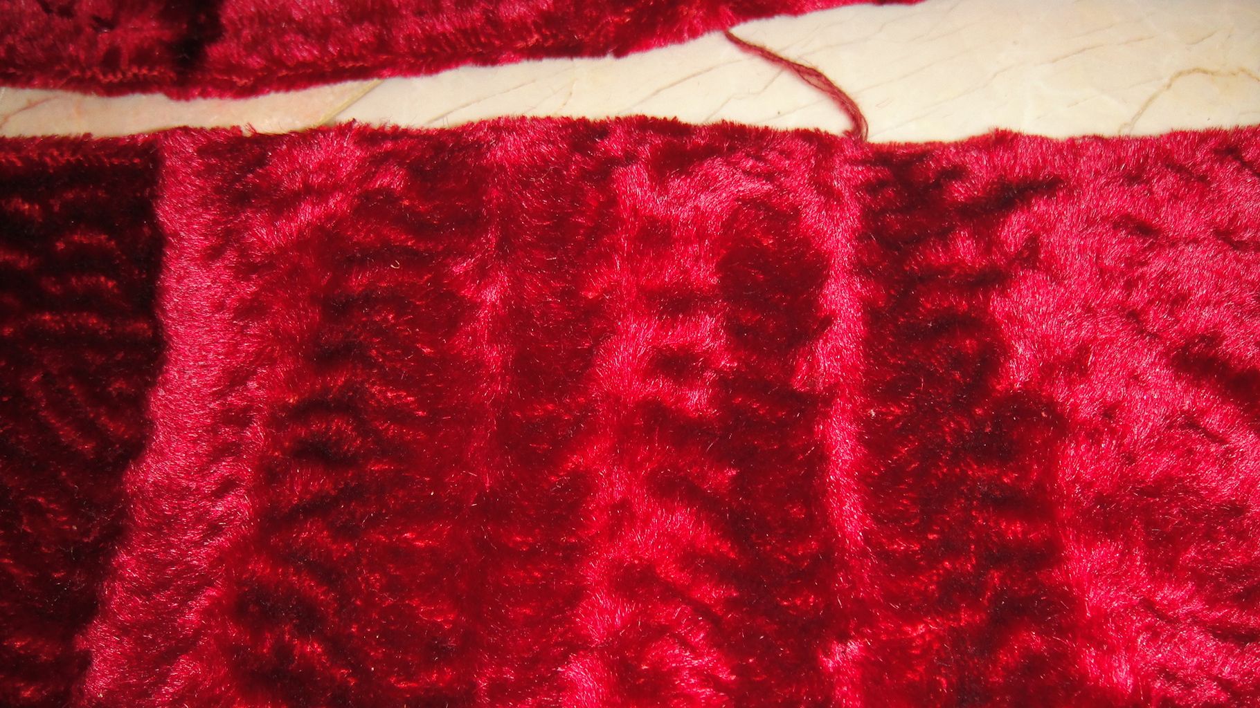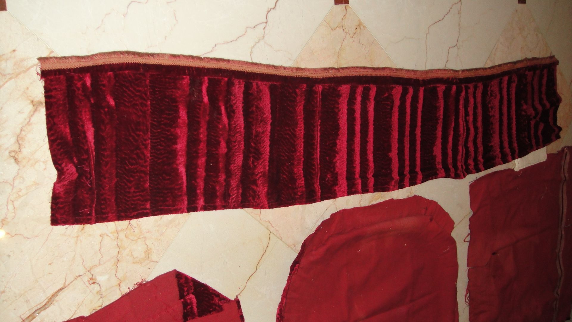 Pg.7/ Rich in appearance French Antique Velvet pieces of fabric to be used for projects or upholstery or pillows. Total of 4 pcs. in rich burgundy. The velvet has texture in appearance and would certainly show up in the most beautiful way on any piece.
