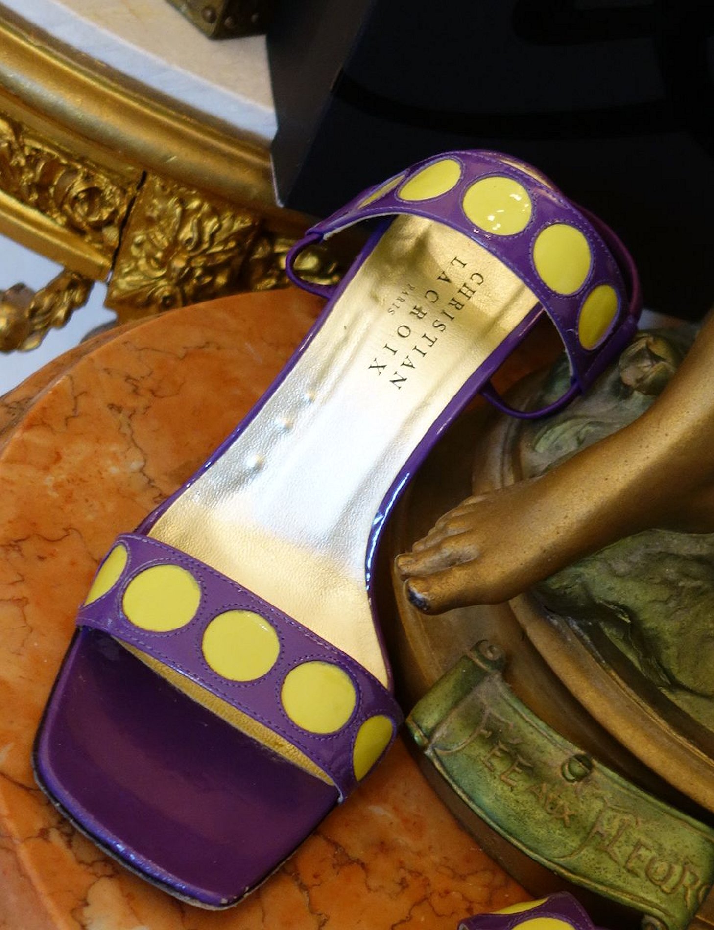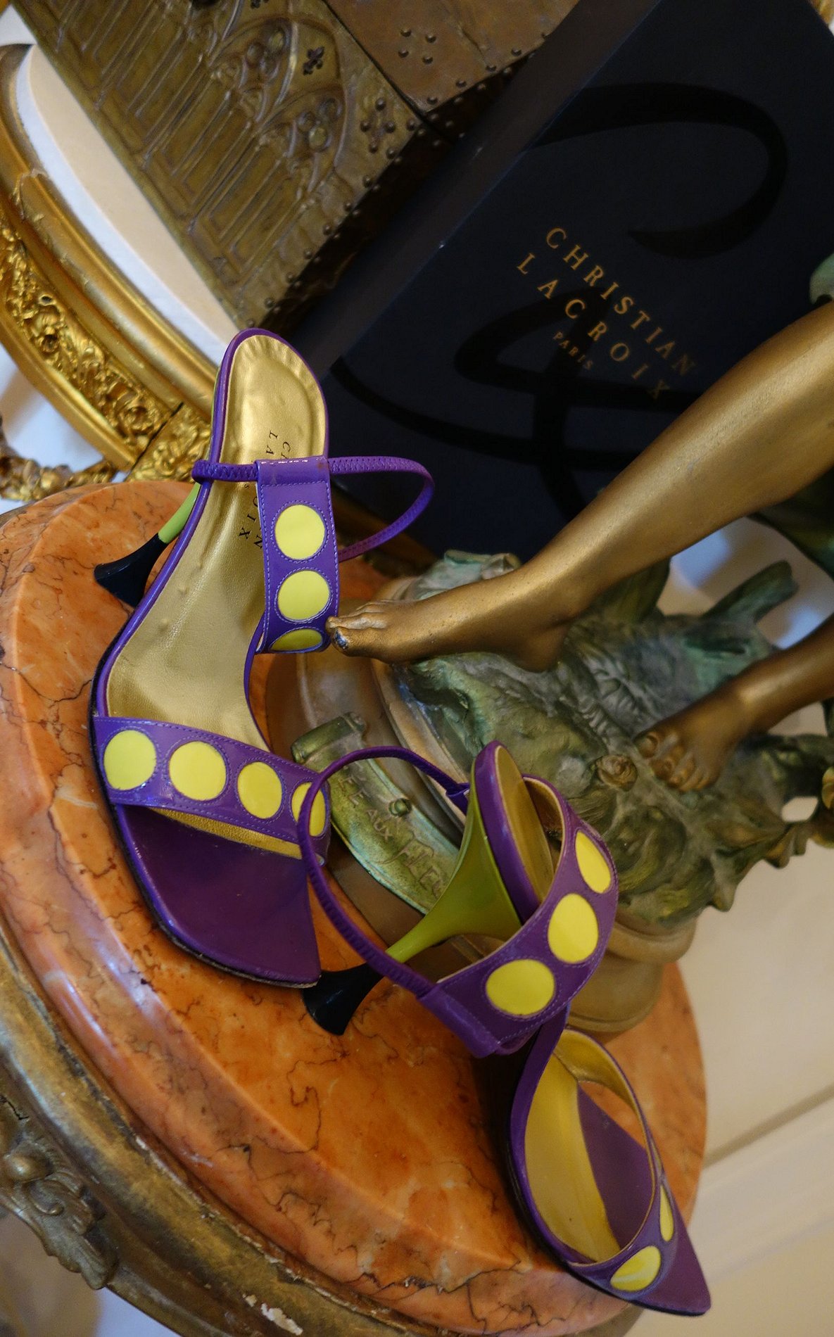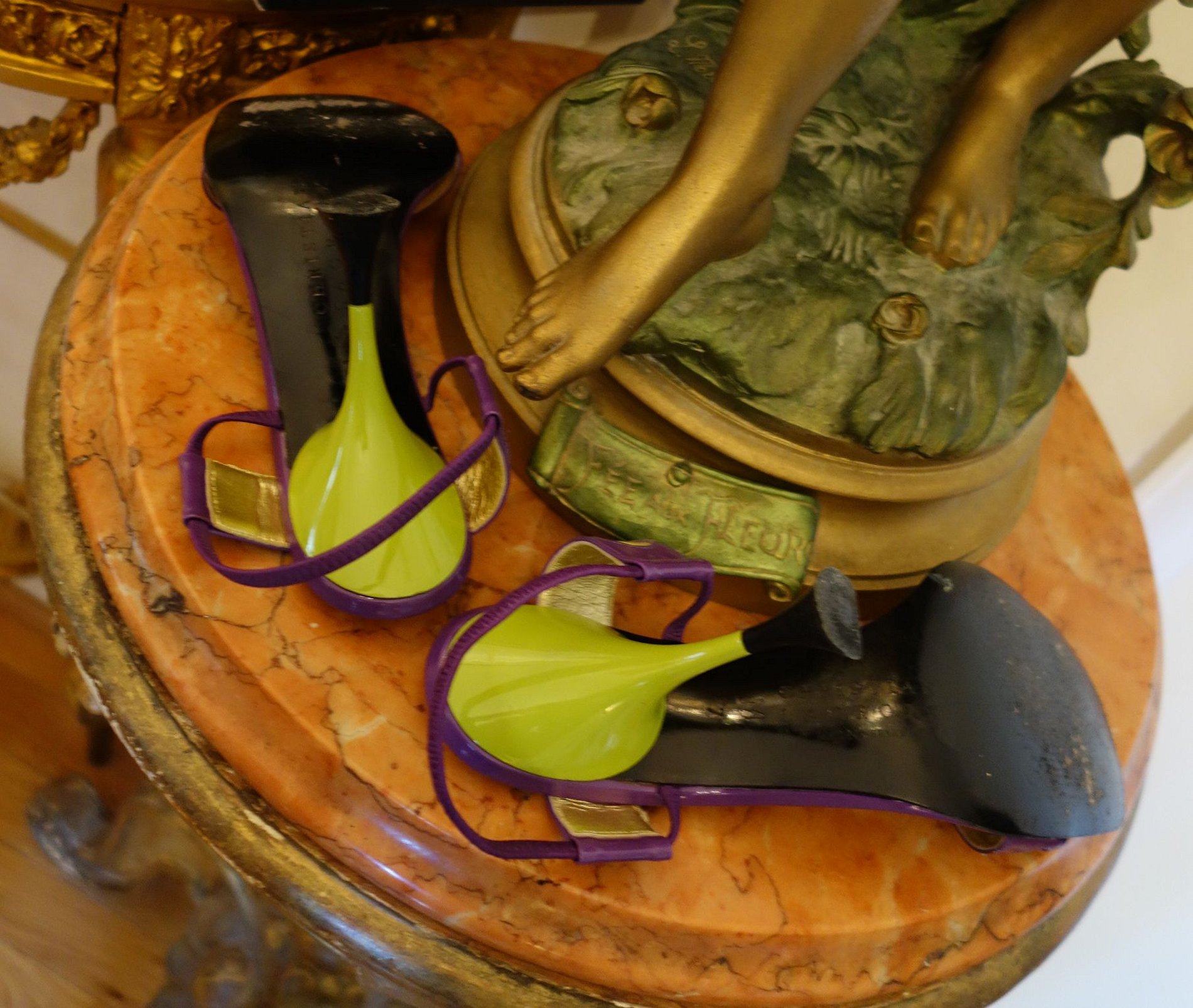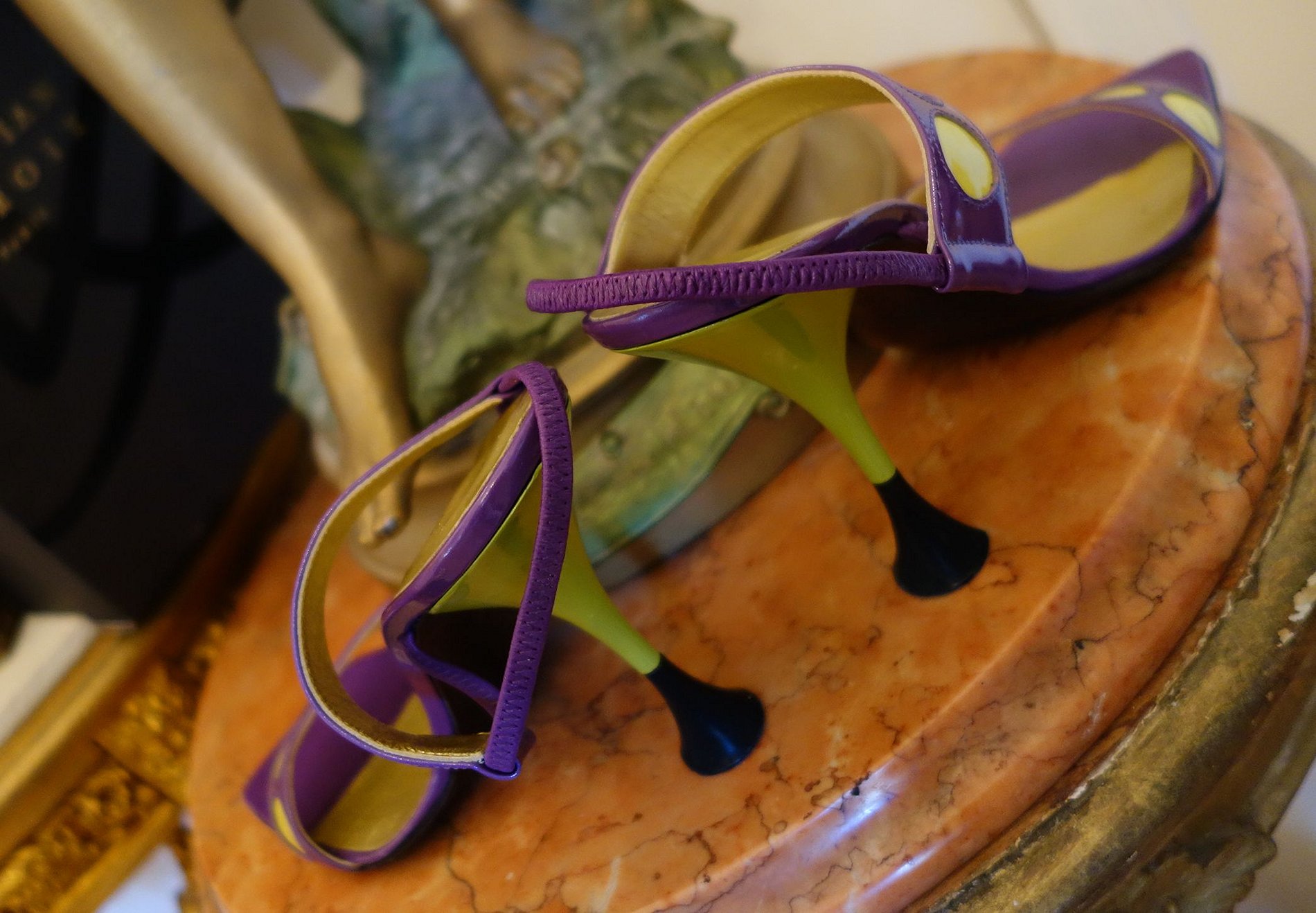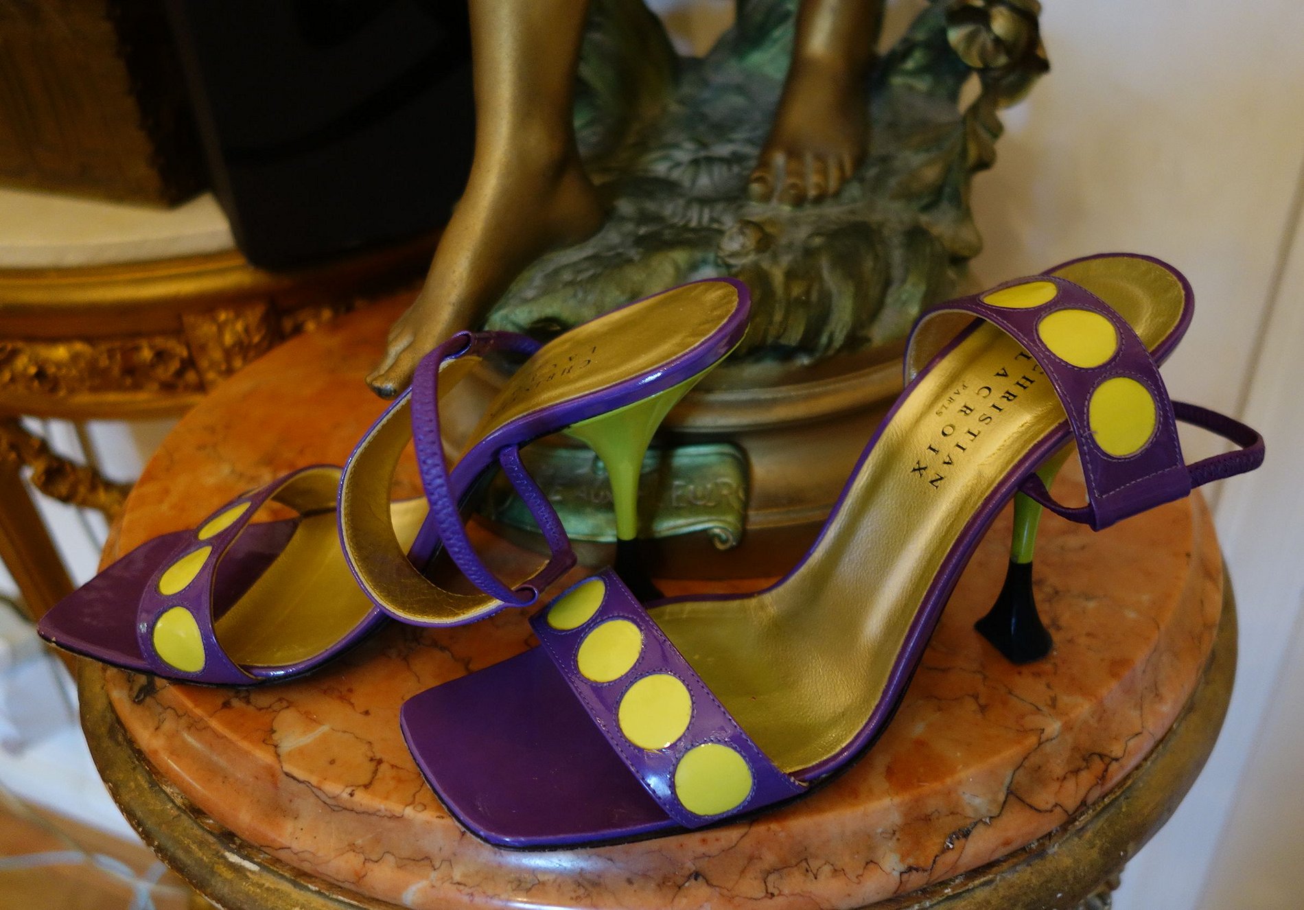 LaCroixHeels. Beautiful LaCroix heels in very Unique colours as shown.. I worn them several times however they remain beautiful as shown and lots more wear for others to admire on your feet. They are patent Leather and when wearing patent leather they seem to look beautiful all the time. Please see my many photos. I am cleaning out my closets and will be listing lots more clothing and shoes--please save my site as everything will be listed cheap for buyers and I hope you will find something you like. The heels on these are gorgeous how they are shaped in addition to the stunning colours in these shoes.