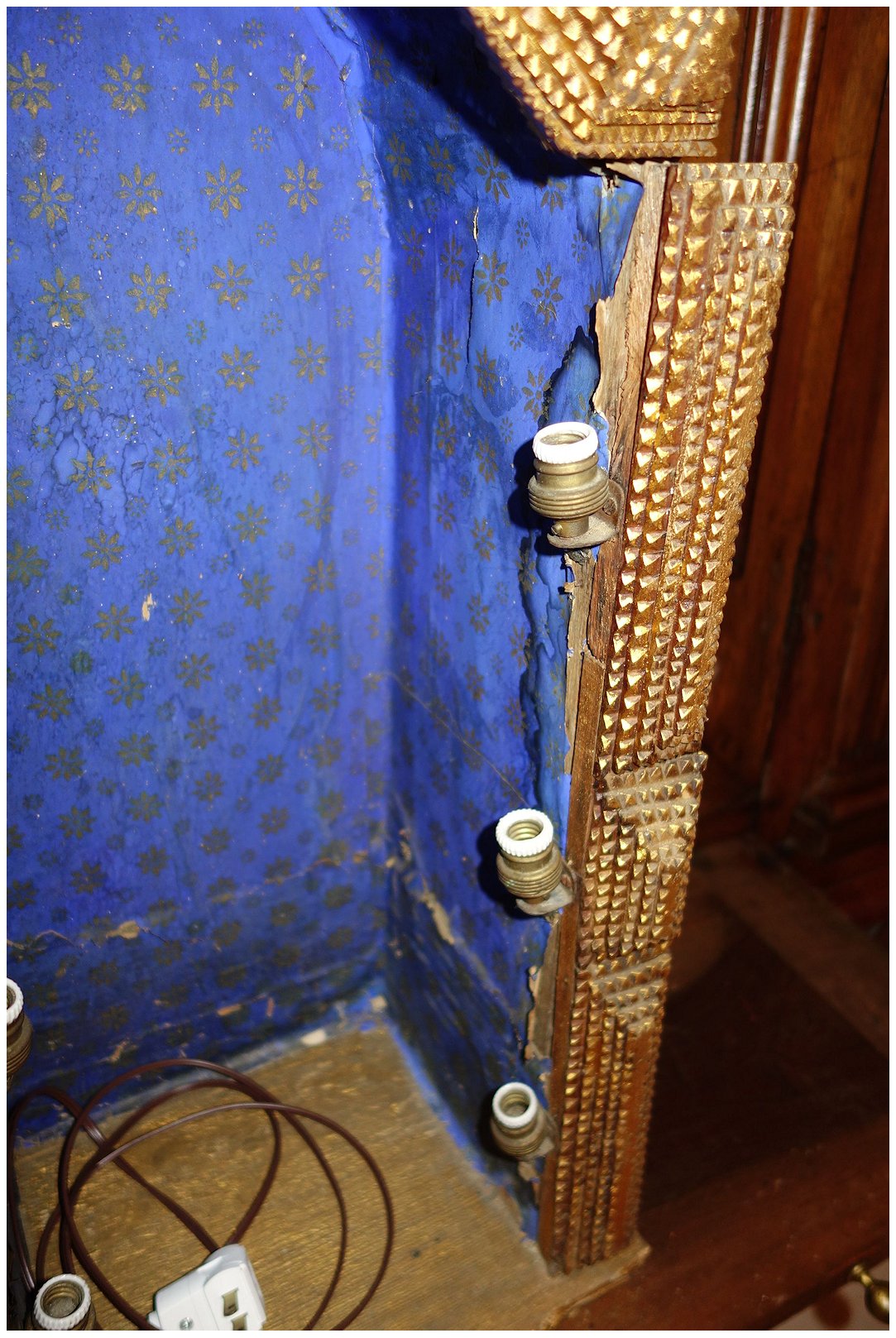 You could use it just about anywhere to enhance any wall and room. In addition --the upper is made with gesso/plaster and gold gilt painted and this is much consuming time in the makings and from being old --some pieces are missing ---although one would not notice by viewing --in addition to wiring having some minor loss and cracks shown and I will pack it ultra well for you and secure all these pieces well and stuff each and make sure its truly packed well for a safe arrival at your door-- as its honestly a gorgeous piece as you can see.