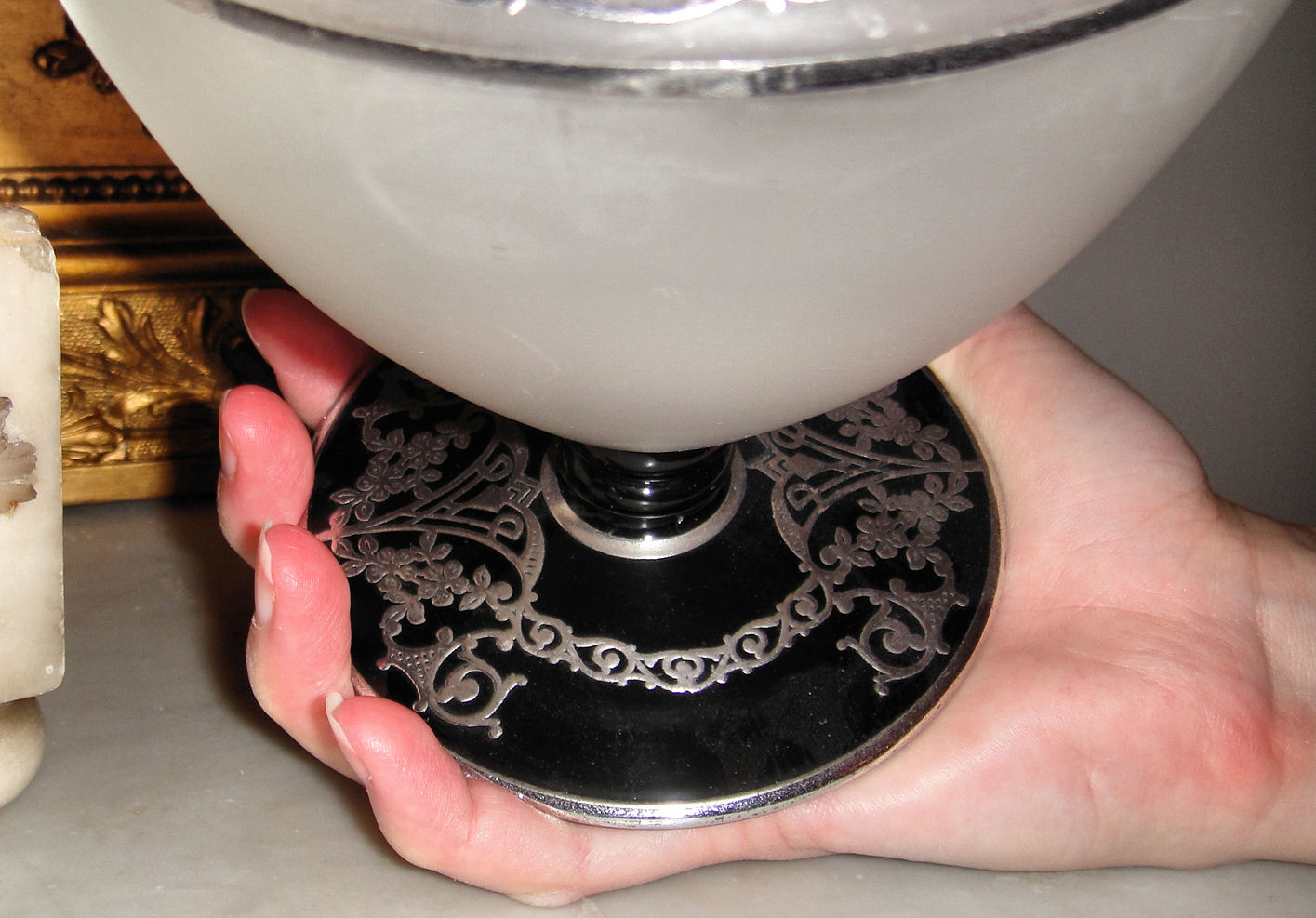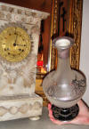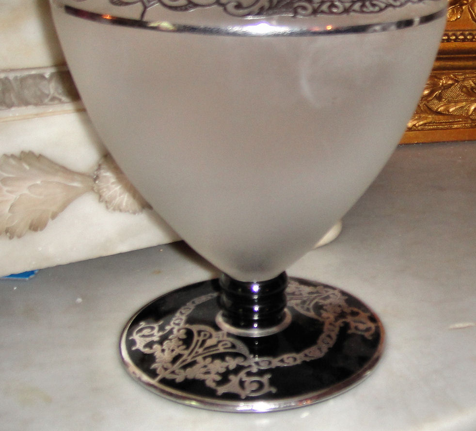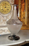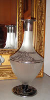 #40. Gorgeous Antique Silver and Glass Decanter, Vase and a great display piece. The workmanship is stunning on this will lots of ornate motifs surrounding this entire piece. The glass is satin having black at base and all ornate details of silver. my photos are always part of my description.