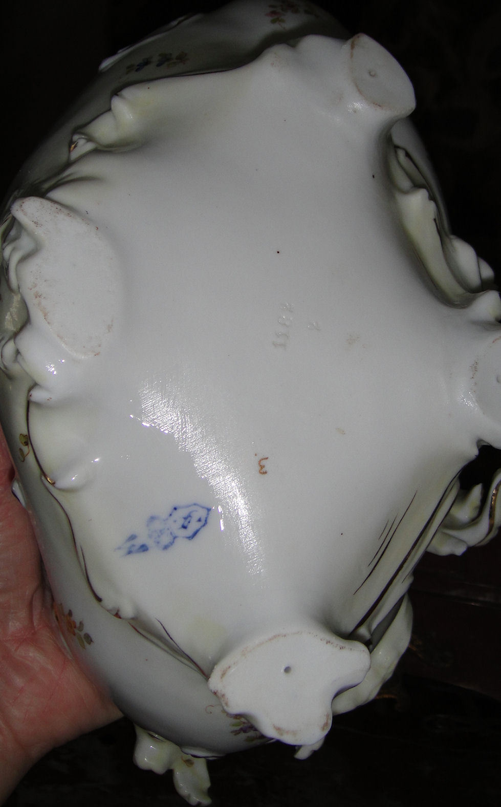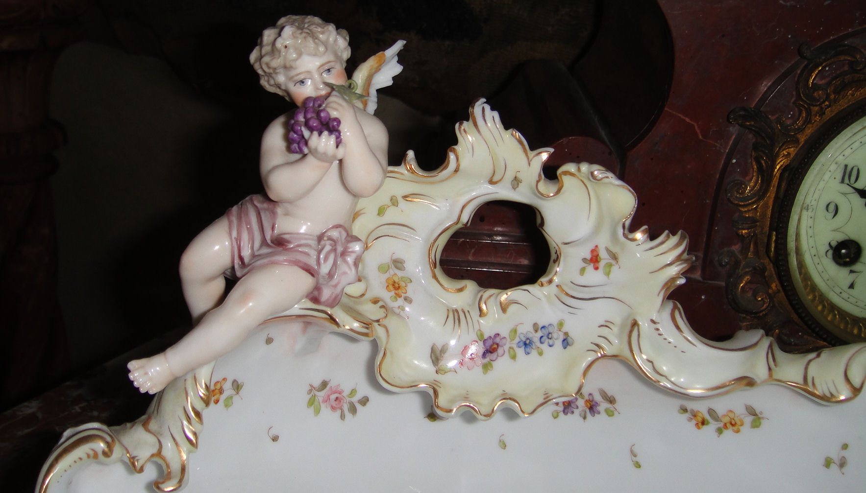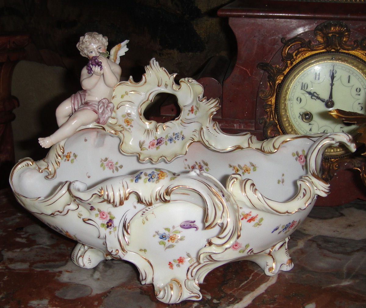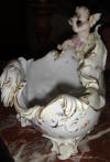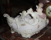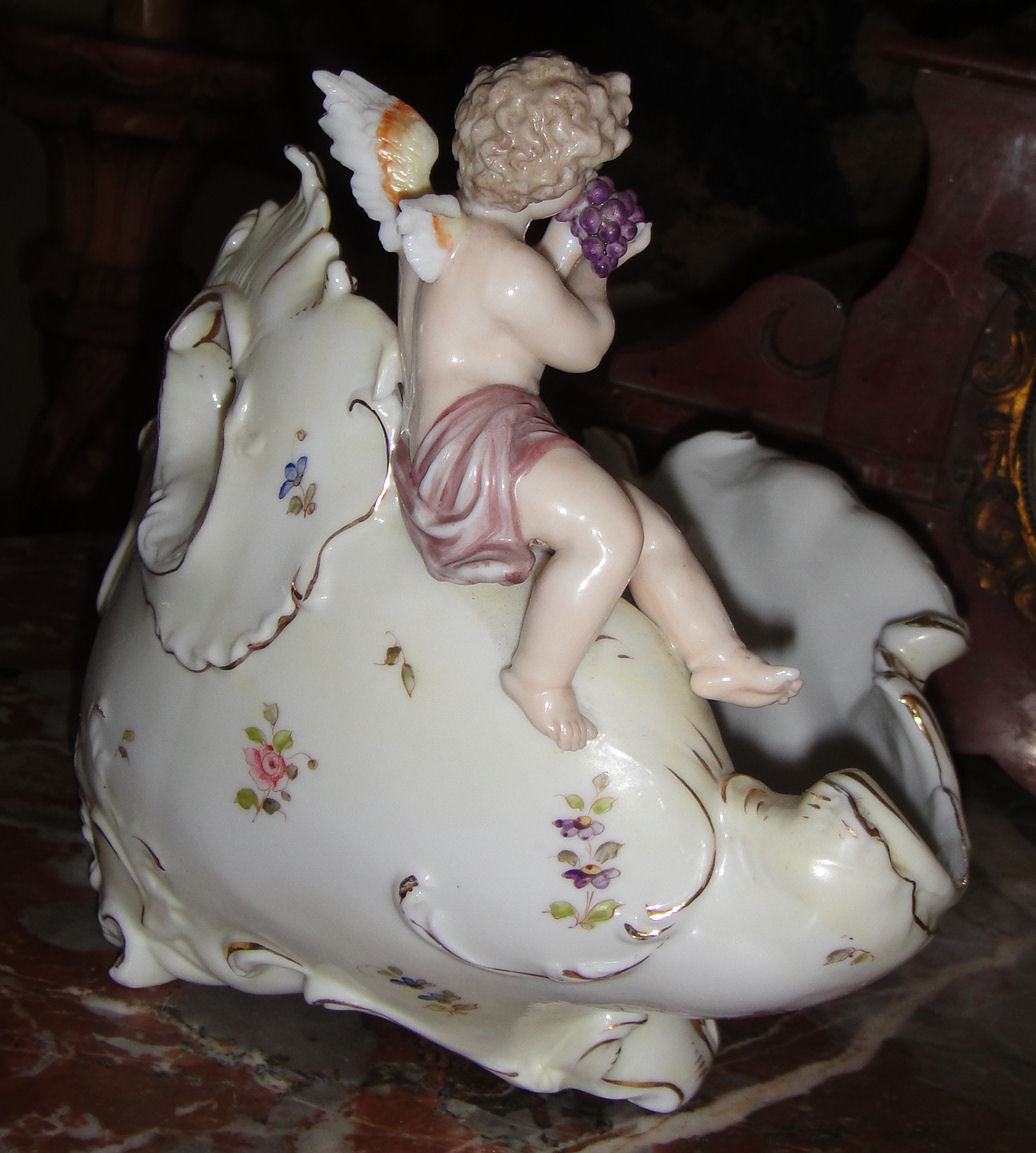 #CUPIPOR.Pg.P. Exceptional French Antique Porcelain Cupid Compote having vivid colours with white French Porcelain. circa 1880. This is Truly made Exceptional with such real like appearance due to the expertise of the fine French workmanship. The cupids wings, in addition to appearance, is exquisite in fine details and colours. This can be used for just about anything ,such as soaps in your bath, candy during the holidays or-- of course any day of the week with fine chocolates, hair pins on your dresser, even a gravy bowl during a fine dinner, your eye glasses, or contact lens case, sun glasses, and so much more. This would be exquisite when set beside your bed with nuts or even your sleeping eye mask. It is signed underneath and I added very large photos for your viewing. Please see all the fine details of the cupids delicate porcelain feet in addition to the hands and colours and face with wings. It is in gorgeous condition due to its age and the Feet are Excellent / perfect. More to be added shortly -- please email me, just listed from recent trip.