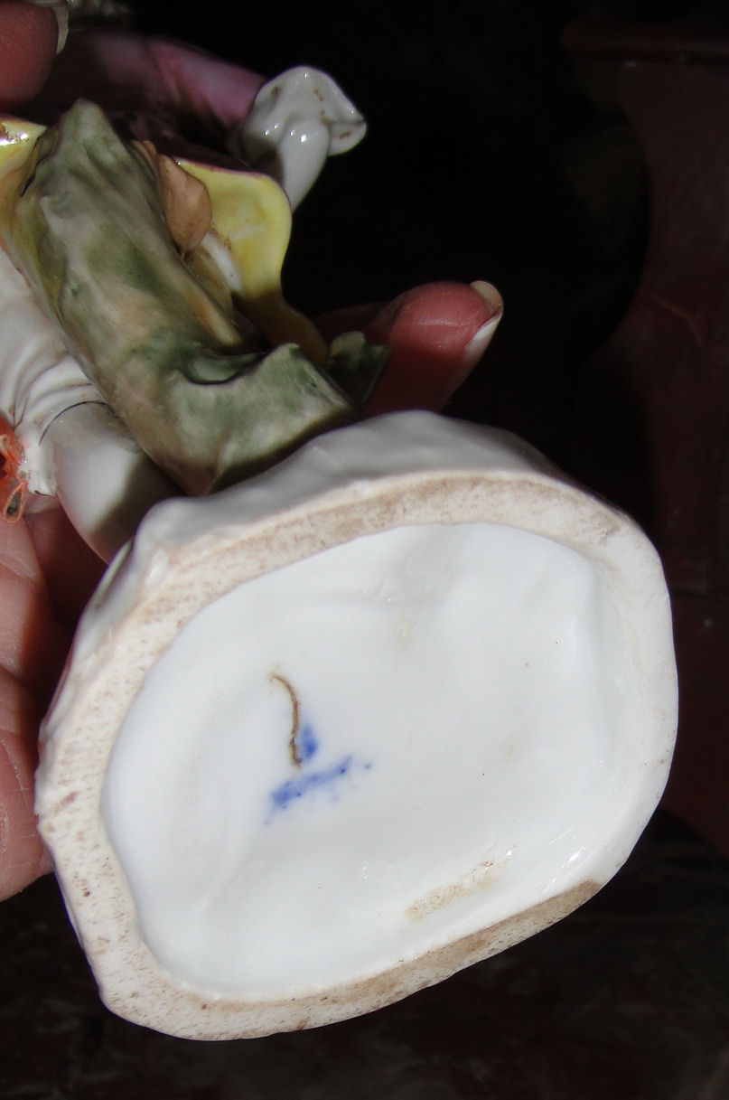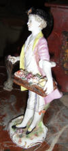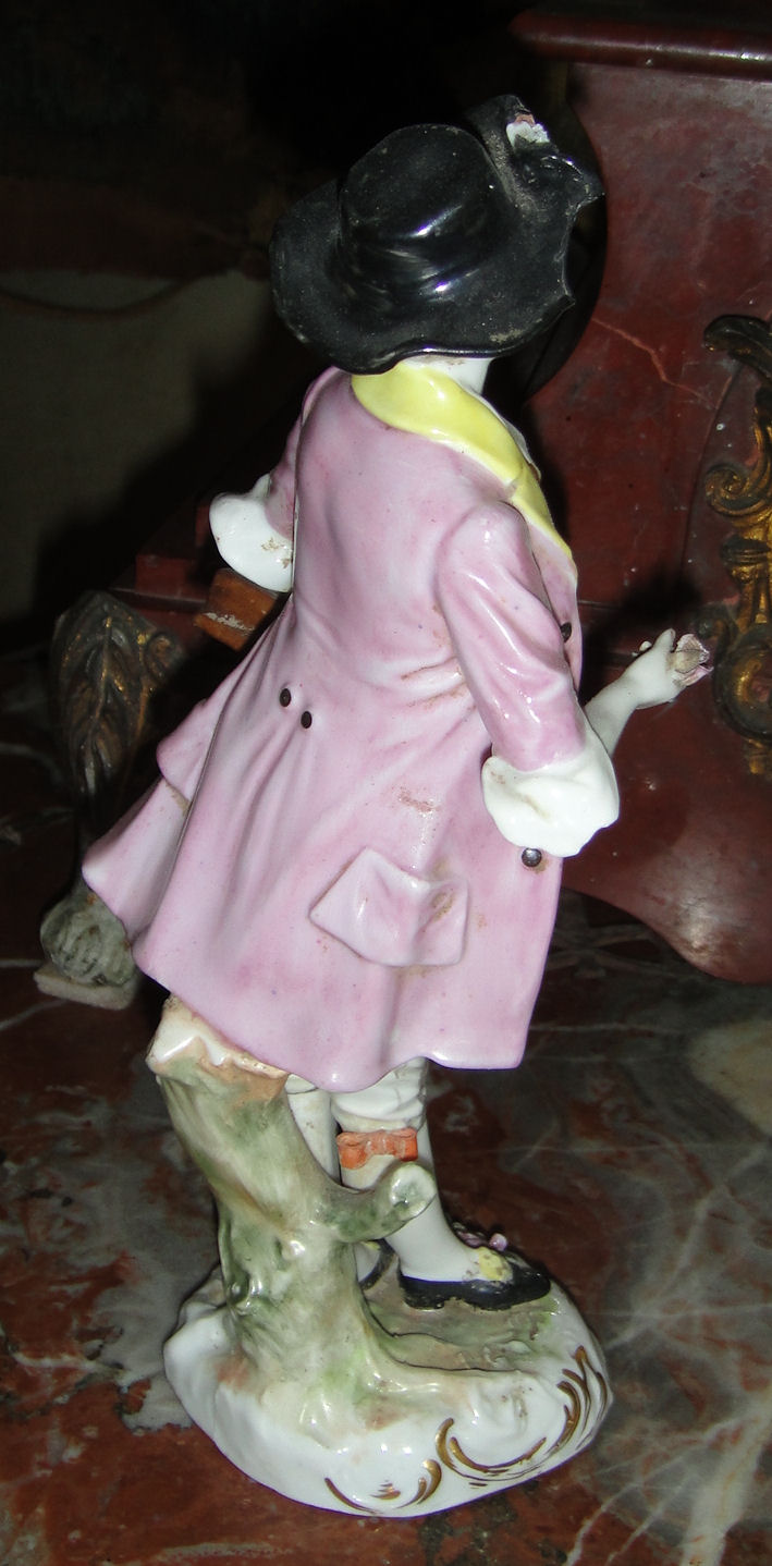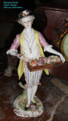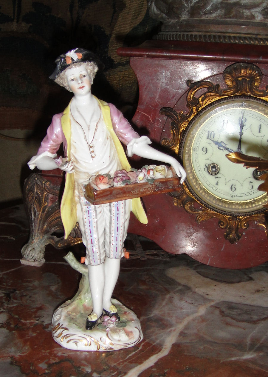#PORMANPg.P. Gorgeous details fine Porcelain French Antique Figure of a Gentleman, circa 1880's. This is another exquisite French antique porcelain figure having such vivid colours in addition to its lovely workmanship. The flowers are vivid and so details as he holds with his two hands with no breakage in the flowers and no breakage in his hands also. I noticed -- in two leafs on the flowers between his feet they are off --which I added large photos for your viewing however, this is so minor due to the Exquisiteness of this piece. Just brought back from recent trip and more information to be added shortly.